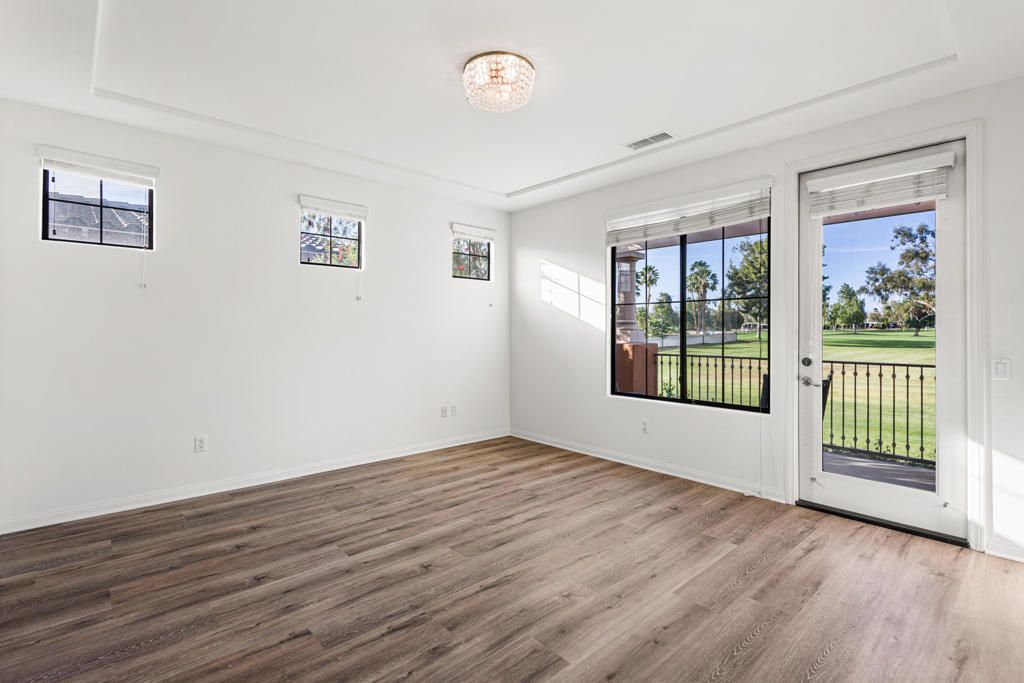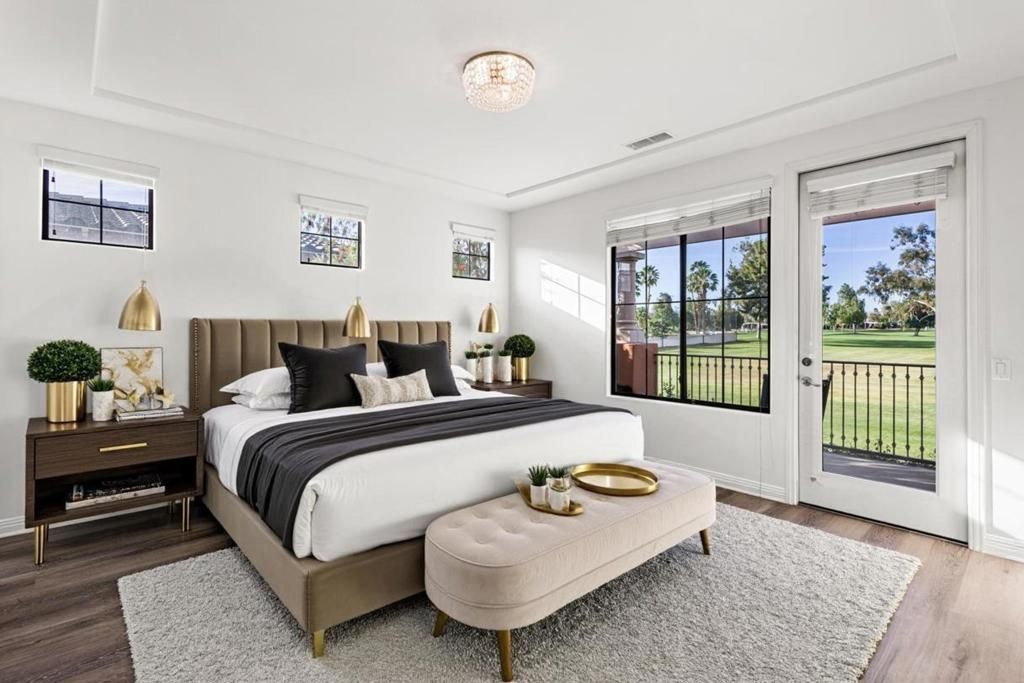 Welcome to refined desert living in the gated community of Brava in Palm Desert. This beautifully designed 3 bedroom, 3 bath residence offers an elegant blend of comfort, style, and effortless indoor - outdoor living. Step inside to discover a light filled open floor plan with soaring ceilings, generous living spaces, new flooring and tasteful finishes throughout. The home is thoughtfully designed for both relaxed living and entertaining, with a seamless flow between the living room, dining area, and well appointed kitchen featuring abundant cabinetry and ample counter space. The spacious primary suite serves as a private retreat, complete with unobstructed views of the mountains and golf course, and a luxurious ensuite bath offering dual vanities, soaking tub, and a separate glass shower. Additional bedrooms provide flexibility for guests, family, or a home office. Enjoy peaceful desert evenings from the covered patio, perfect for morning coffee or sunset gatherings. The home also includes a private attached garage and low maintenance landscaping for easy living. Residents of Brava enjoy resort style amenities including a sparkling pool and spa, fitness center, and beautifully landscaped grounds. Ideally located just minutes from shopping, dining, golf and entertainment, this home offers the perfect balance of privacy, convenience, and elevated desert lifestyle.A wonderful opportunity to experience luxury living in the heart of Palm Desert.