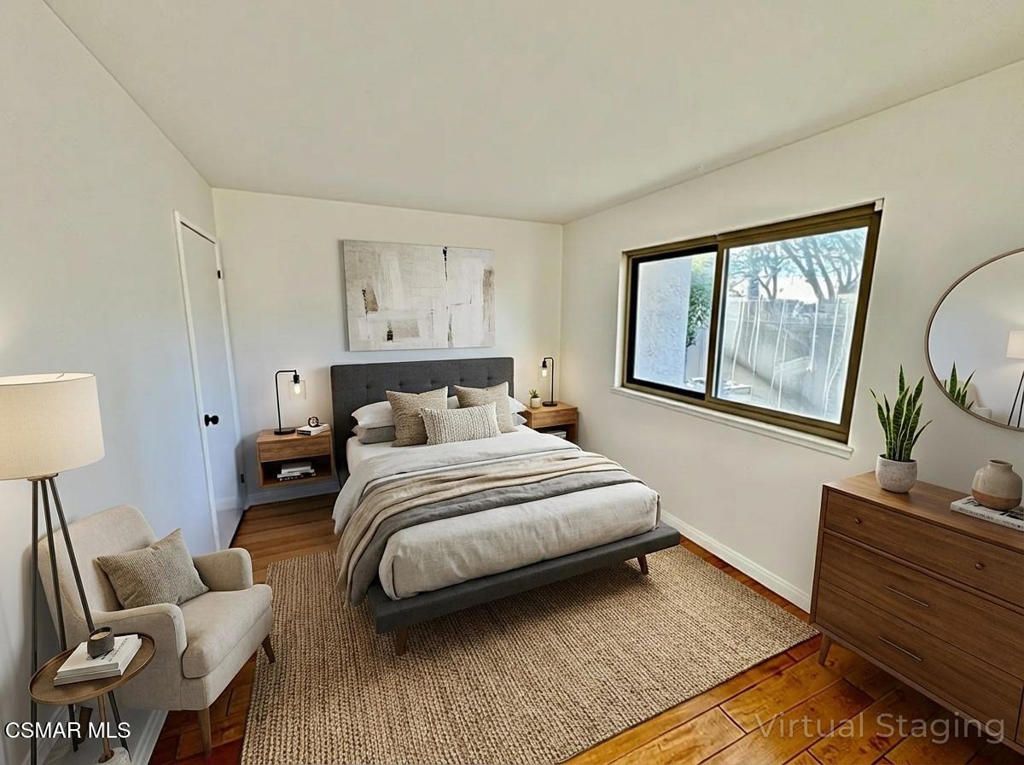 Welcome to this beautifully updated, lower-level, single-story condo located in the highly sought-after Varsity Village community, just moments from Moorpark College. This charming 2-bedroom, 1.5-bath residence offers the perfect blend of style, comfort, and convenience, making it an exceptional opportunity for first-time buyers, downsizers, or investors seeking strong rental demand.Step inside to a bright, open, and inviting floor plan filled with natural light. The home features fresh interior paint, recessed lighting,new window coverings, elegant wood-like flooring throughout the main living areas, and plush new carpet in the bedroom. The upgraded kitchen with granite counter tops and remodeled main bathroom elevate the space with a modern touch, while nearly 1,000 square feet of thoughtfully designed living space creates a seamless and functional flow that truly feels like home. Spacious back fenced in patio for entertaining that leads to beautiful greenbelts.One of the rare highlights at this price point is the attached two-car garage and parking for 2 cars in front of garage with laundry hookups, offering both convenience and added storage.Enjoy resort-style living in a peaceful, well-maintained community featuring a sparkling pool and clubhouse, perfect for relaxing or entertaining. The HOA provides outstanding value by covering water, trash, landscaping, pool, and clubhouse maintenance, allowing for easy, low-maintenance living.This move-in-ready home delivers exceptional value in one of Moorpark's most desirable communities an opportunity you won't want to miss.