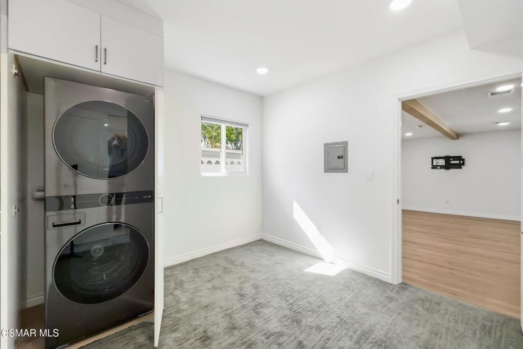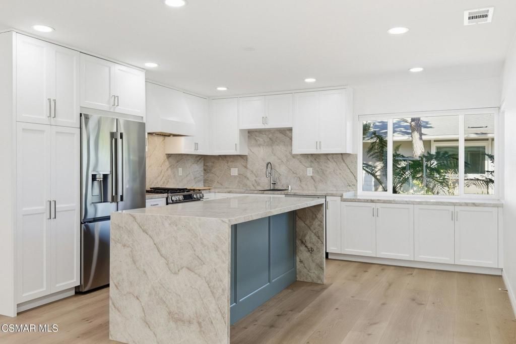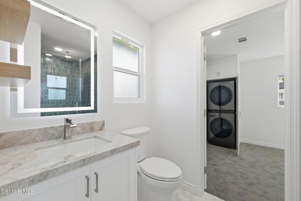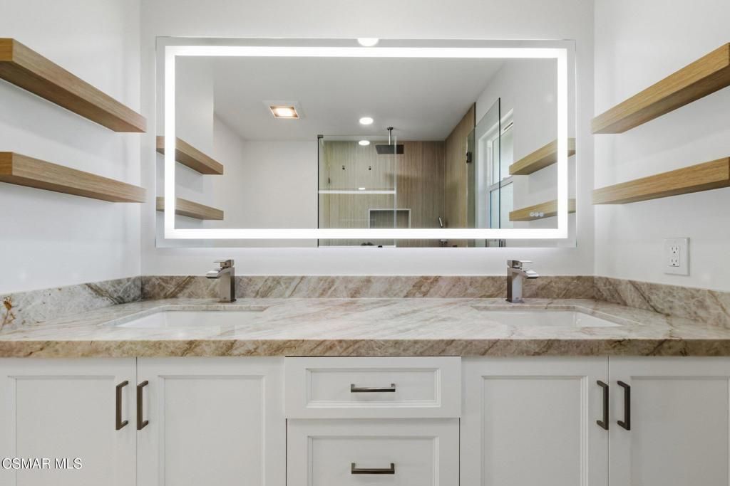 Deluxe Single-Level End-Unit with additional Kitchen/ living room added in the garage! Welcome to this rare offering of two freshly renovated, single-level end-unit condo with two private entries, 2 kitchens, dual heating and air, dual laundry, and 2 bathrooms. Thoughtfully designed with spectacular open floor plans, this residences features expansive living spaces filled with natural light. The main kitchen is a showpiece, boasting a massive quartz island, all-new cabinetry, top-of-the-line appliances, and a walk-in pantry. It flows seamlessly into the spacious living room perfect for entertaining. The main bathroom is a true retreat, complete with a large double vanity, light-up mirror, frameless walk-in shower, and rain shower head with handheld wand. Two additional spacious bedrooms complete this side of the home. The second kitchen offers ample counter space, quartz countertops, a large single-basin sink, and new appliances. It opens to its own generous living area and includes a beautifully remodeled bathroom with a walk-in shower and rain shower head/wand, plus two more bedrooms and a personal stackable laundry. Additional highlights include: All-new flooring throughout Custom blinds, including automatic sliding blinds for the sliding glass doors, fresh paint, updated lighting, and modern plumbing fixtures Enjoy resort-style amenities with a community pool, clubhouse, and 9-hole golf course. All of this, just minutes from shopping, Ventura Harbor, and the beach!