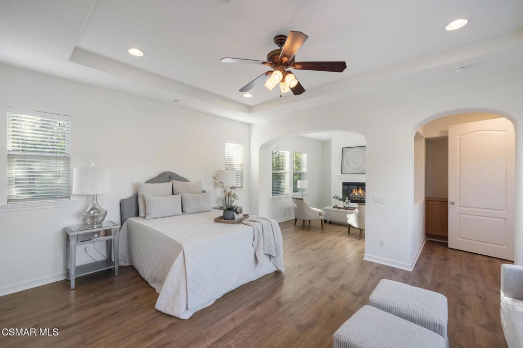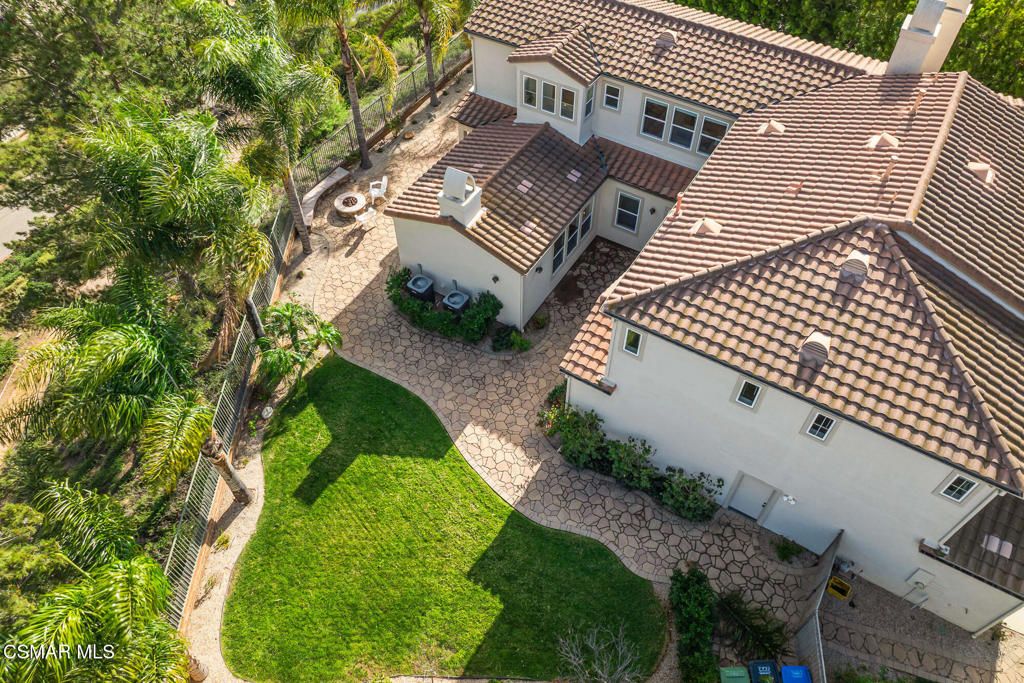 This exceptional home offers over 4,200 square feet, 5 bedrooms, each with en-suite bathrooms, with one located conveniently downstairs, an incredible floor plan with a paver-enhanced backyard made for entertaining or relaxing in the prestigious gated community of Meridian Hills.This beautifully maintained residence sits at the end of a quiet cul-de-sac, capturing stunning mountain and sunset views. Offering 5 bedrooms, 5.5 baths, a spacious loft and a private office, the home spans over 4,200 square feet of thoughtfully designed living space.A dramatic entry welcomes you with a sweeping staircase, soaring ceilings, recessed lighting and elegant stone flooring throughout the main level. Formal living and dining rooms provide ideal spaces for entertaining, while a charming private courtyard enhances seamless indoor-outdoor living.The chef-inspired kitchen is appointed with premium stainless steel appliances, granite countertops, abundant cabinetry, large island with seating, breakfast nook, walk-in pantry and butler's pantry. The kitchen opens effortlessly to the light-filled family room, highlighted by expansive windows, a cozy gas fireplace, media niche and new ceiling fan.The main level features a full bedroom with en-suite bath, a dedicated office and a powder room--perfect for guests, multigenerational living, or flexible work-from-home needs. Upstairs, a spacious loft offers an additional gathering space, along with a convenient laundry room and three secondary bedrooms.The luxurious primary suite serves as a serene retreat, showcasing beautiful views, a private sitting area with fireplace, a spa-inspired bath with dual vanities, soaking tub, glass-enclosedshower and an oversized walk-in closet.The entertainer's backyard is designed for year-round enjoyment with multiple seating and play areas, custom pavers throughout, a gas fire pit, fruit trees and breathtaking mountain vistas. An outdoor built-in bar complete with sink, refrigerator and freestanding gas BBQ creates the perfect setting for hosting family and friends.Additional highlights include fresh interior and exterior paint, new high-end wood laminate flooring throughout the entire second level, dual-zone HVAC with smart controls, video doorbell and security cameras and a three-car tandem garage.Residents of Meridian Hills enjoy resort-style amenities including a community pool and spa, clubhouse, BBQ area, playground, and tennis courts--all conveniently located near Moorpark Country Club, top-rated schools, parks, dining and shopping.An exceptional opportunity to own in one of Moorpark's most sought-after gated communities.
