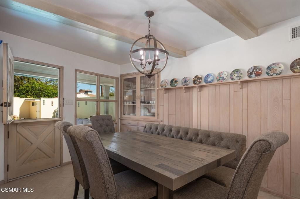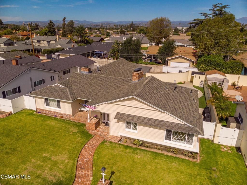 Welcome to this exceptional single-story home in the highly desirable Carriage Estates neighborhood of Oxnard -- a peaceful, walkable community known for its pride of ownership, friendly atmosphere, and quiet streets. This residence is anything but ordinary. Fully upgraded and filled with character, it offers warmth, charm, and distinctive features rarely found in today's homes. Fabulous curb appeal with the winding brick walkway and a patio area, beautiful, beveled glass door with sidelights. Rich brick fireplaces anchor the two living spaces, creating inviting rooms designed for gathering and connection. The dining area is truly one-of-a-kind, showcasing a built-in BBQ and rotisserie that transforms everyday meals into memorable experiences. Custom built-ins throughout, including a beautiful china cabinet and abundant storage, paneled walls and a dutch door, blend timeless style with practical living. Floors are neutral colored wood like which will blend with any color palette. Spacious bright and light upgraded kitchen with lots of windows and a cozy breakfast area. Warm toned granite counters, upgraded appliances, resurfaced cabinetry, new doors and drawer facing, newer sink and plumbing, exhaust fan as well with hood in cooktop, oven and microwave. Plenty of space for entertaining and gathering with friends and family all around the kitchen. Laundry area is a true large spacious room with sink and sewing counter and a bathroom with shower which makes it so convenient. This home also has two designated living areas, large family room and a cozy den which is perfect for gatherings. Primary retreat is fabulous with newer closet doors lots of room in closet and nicely remodeled bathroom. Secondary bedrooms are also spacious, one perhaps for an office. Custom built in area that is so well thought out and different for more storage. Remodeled spacious secondary bathroom with double vanities, shower and tub. Natural light pours in through plentiful windows, while four separate doors open to the backyard, creating seamless indoor-outdoor flow. The covered patio with recessed lighting is a perfect place to entertain. Plenty of outdoor space for relaxing by pool and a tranquil fountain, backyard speakers provide the perfect setting for relaxing evenings or effortless entertaining. Sparkling pool newly replastered with new light and split drains. Low maintenance home as well with synthetic turf in back. Large Shed has pool equipment so its out of your way. 2 car garage with extended length and built-ins with easy access to home. Close to shopping, parks and schools, the location is fabulous. Charming, unique, and thoughtfully designed, this Carriage Estates home offers comfort, personality, and a lifestyle that truly stands apart. Ahhh... Southern California living!