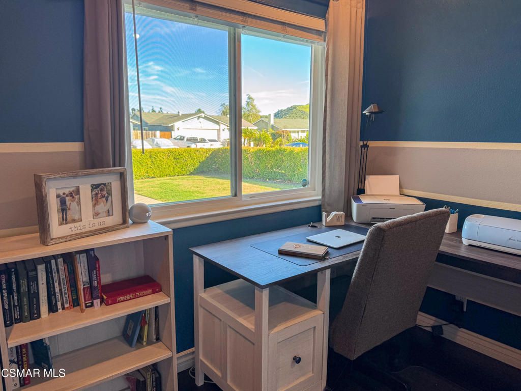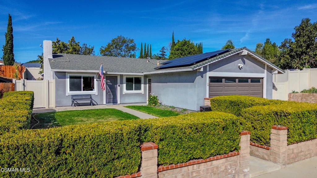 Comfort, convenience, and effortless everyday living come together in this Moorpark home, and it's one that deserves your attention.This move-in ready Campus Park home features a well-balanced layout designed for both connection and separation when you want it. Two fully finished living areas -- a rarity for this model -- truly set it apart. In addition to the light-filled front living room with a remote-operated fireplace, there's a separate rear den ideal for movie nights, play space, or a relaxed second lounge. The natural flow between living, dining, and kitchen areas makes hosting feel seamless. The kitchen features marble countertops, white cabinetry with glass accents, and stainless steel appliances. Fresh interior paint throughout creates clean, cohesive rooms that feels polished and refreshed. Out back, enjoy a private yard with no elevated neighbors overlooking you, enhanced by vinyl fencing and a side-yard shed for added privacy and practical storage. Mature fruit trees -- avocado, guava, and lemon -- plus fresh mint and jalapeno bring true California garden living to your backyard. Solar panels installed in 2022 enhance energy efficiency, while smart home features including a Ring doorbell, Kasa dimmers, and a Google Nest thermostat add everyday convenience. Homes in Campus Park offering this combination of layout, privacy, and upgrades don't come around often. With a nearby neighborhood park and playground, dog park, the teaching zoo at Moorpark College, and easy access to the 118 Freeway, this home delivers lifestyle, location, and long-term value in one package.