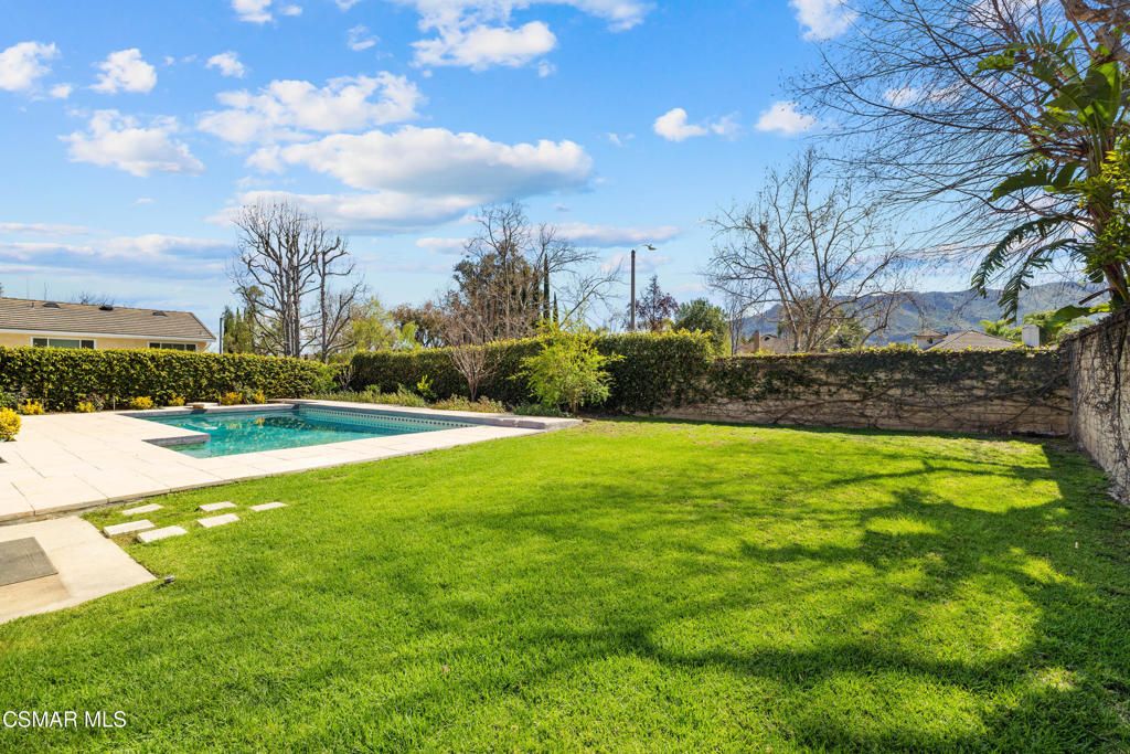 Located on a quiet cul-de-sac street in the highly desirable Morrison Ranch community of Agoura Hills, this spacious two story home offers four bedrooms, three bathrooms, and a wonderful opportunity to create your ideal living space. Known for its tree lined streets, strong sense of community, and access to scenic parks and hiking trails, Morrison Ranch is also part of the award winning Las Virgenes Unified School District.A grand staircase welcomes you upon entry, leading into a light filled floor plan designed for both everyday living and entertaining. The home features multiple living areas, including a bright living room with a fireplace and bar and an inviting family room with its own fireplace, offering comfortable spaces for relaxing or gathering with friends and family. A formal dining room provides the perfect setting for holidays and special occasions.The kitchen is equipped with granite countertops, cabinetry with pull out shelves, stainless steel appliances, and generous storage. A charming breakfast nook overlooks the backyard, creating an ideal spot for casual meals or morning coffee.The flexible floor plan includes a bedroom and full bathroom on the main level, ideal for guests, a home office, or multigenerational living. Upstairs, the expansive primary suite features a sitting area/office with a wet bar along with large walk-in closet, and a spacious en-suite bathroom, a soaking tub, and a separate shower. Two additional bedrooms share a hall bathroom.Step outside to a private backyard retreat designed for enjoying the Southern California lifestyle. The space features a sparkling pool, along with multiple areas for outdoor dining, lounging, and entertaining.With its generous layout, desirable location, and incredible potential, this Morrison Ranch home offers a rare opportunity to create something truly special.
