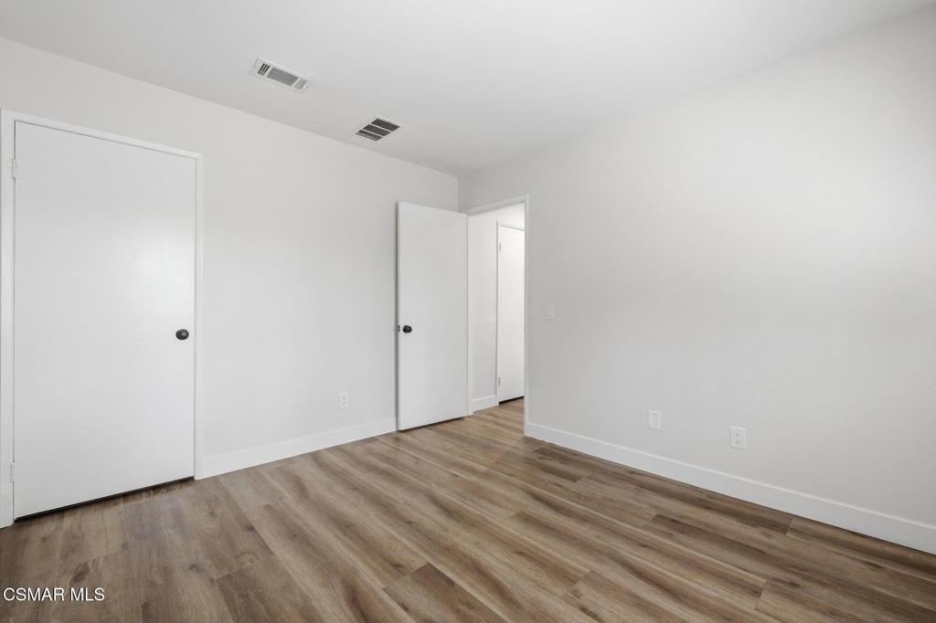 Tucked away in one of Moorpark's most beautiful neighborhoods, this private, attached end-unit single-family residence within a Planned Unit Development (PUD) offers a serene setting surrounded by mature trees, lush greenbelts, and well-maintained streets. Ideally located within the desirable Varsity Park Villas, the home sits at the top of the neighborhood, providing peaceful surroundings, scenic views, and quick, easy access to freeways, shopping, dining, hiking trails, parks, and Moorpark College. With only one shared wall, this residence lives much like a detached home, offering exceptional privacy and comfort.This home offers a detached two-car garage, first-floor laundry with washer and dryer included, and modern finishes throughout. The updated kitchen features shaker-style cabinetry, newer Samsung stainless steel appliances (refrigerator included), chic lighting, smooth ceilings, and oak vinyl flooring. The well-designed layout includes a decorative fireplace, a family room opening to a private patio, and a first-floor bedroom with an adjacent powder room, perfect for guests or flexible living.Upstairs, the spacious primary bedroom offers scenic views and a stunning, highly stylish en-suite bath featuring a sliding barn door and a generously sized closet. The second upstairs bedroom also enjoys mountain views and its own full bathroom.The rear patio is open and inviting--perfect for morning coffee or unwinding in the evening. A tall, mature tree with a swing and soft string lights creates a peaceful outdoor retreat, with direct access to the detached two-car garage.HOA amenities and services include trash service, exterior maintenance and paint, roof coverage, master insurance including fire and earthquake coverage, beautifully maintained greenbelts and common areas, two pools, and two clubhouses. This is a rare opportunity to own an exceptional home in a quiet, well-kept community close to everything Moorpark has to offer.