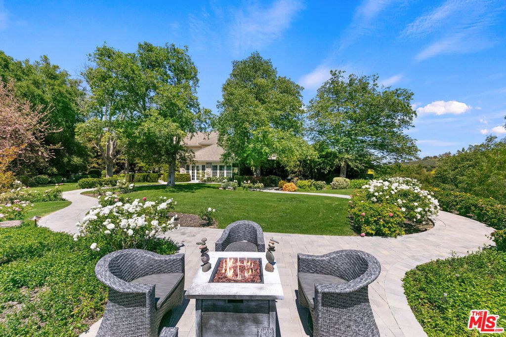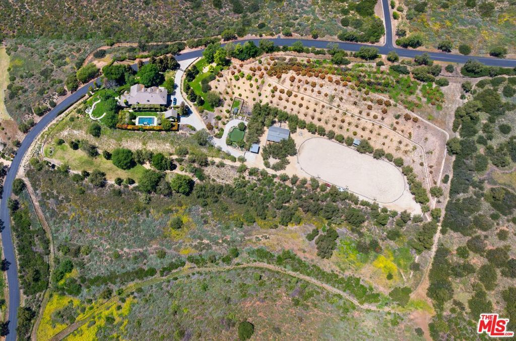 Just reduced - Truly the best equestrian luxury property under $7.5m. Set against the backdrop of breathtaking Santa Rosa Valley, Rocking Horse Ranch is a 21-acre dream estate that strikes the perfect chord. Tucked within a private, gated equestrian enclave where bridle paths weave through the community, this Country French-style retreat is more than just a home - it's a lifestyle. Step inside the 6,731-square-foot main house and find a harmony of style and space, boasting 7 bedrooms and 6 bathrooms. This estate knows how to entertain, with beautifully landscaped areas (designed by Wendy Harper of Gardens of the World) that provide the perfect setting for hosting everything from intimate get-togethers to crowd-pleasing outdoor events. A detached (approx) 1200 sf 2-level pool/guest house/recording studio with living space, bath area, kitchen and laundry area overlooks it all, is ready to inspire your next composition or host your favorite guests. For the horse enthusiast, the property features a 6-stall barn with turnouts, a mini kitchen/bath, and a tack/sitting room, perfect for pre-ride chats or post-ride cool-downs. The star attraction is the regulation-sized riding arena with grandfathered lights (a rarity in Santa Rosa Valley) and a viewing stand that's ready to host any equestrian performance. There's also a hot walker, washing station, a pony ring and even a luxe chicken coop resort. But it's not all boots and saddles. This estate has plenty of space to kick back and enjoy the good life. Wander through the avocado grove, tend to the greenhouse and rose garden, or perfect your short game on the putting green which doubles as an outdoor venue for movie nights under the stars. And don't miss the gentle fenced path to a lush, flat grass area, perfect for hosting everything from weddings to soccer practice to memorable barbeques while taking in the Santa Rosa Valley views. The main residence presents high ceilings, a custom library/office, a music room, and gathering area with fireplace and sun room that opens onto the spectacular outdoor entertainment spaces. The kitchen is a chef's arena, showcasing Sub-Zero refrigerator and freezer, 2 Dacor ovens, a 48-inch Thermador stove top w/BBQ, 2 Miele dishwashers, and 2 islands big enough for your entire crew. Nearby, the formal dining room comes complete with a bar and service area, ideal for cocktails and conversation. On the first floor, a full-bedroom suite with a private entrance is perfect for guests or au pair. Upstairs, the primary suite is pure indulgence, with a cozy fireplace, French doors leading to a sprawling balcony, and a mini kitchen for morning coffee or late-night snacks. Five spacious additional bedroom suites complete this level. Four fireplaces and heated floors add to the home's warm appeal while integrated speakers, Creston automation and video security systems supply smart home features at your fingertips. There is an oversized 4-car garage and ample guest parking behind the entry gates. And when the lights go down? Head to the upper-level movie room with a bar, or step out to the exceptional pool and spa area, where a waterfall wall, fire features, and three covered gathering spaces set the stage for unforgettable evenings. The detached outdoor living room features a large fireplace, TV, outdoor kitchen and bar. Whether you're throwing unforgettable pool parties, riding the trails or simply soaking in the sunsets, this estate is where country dreams and artistic inspiration come together in perfect harmony