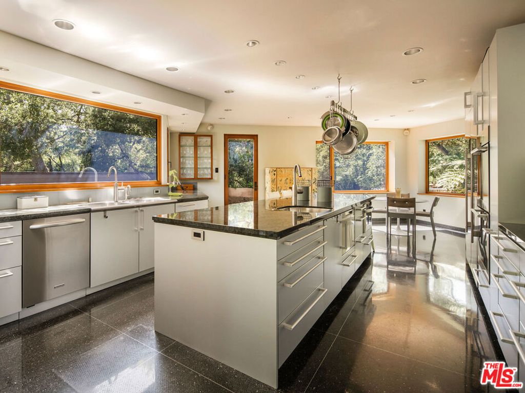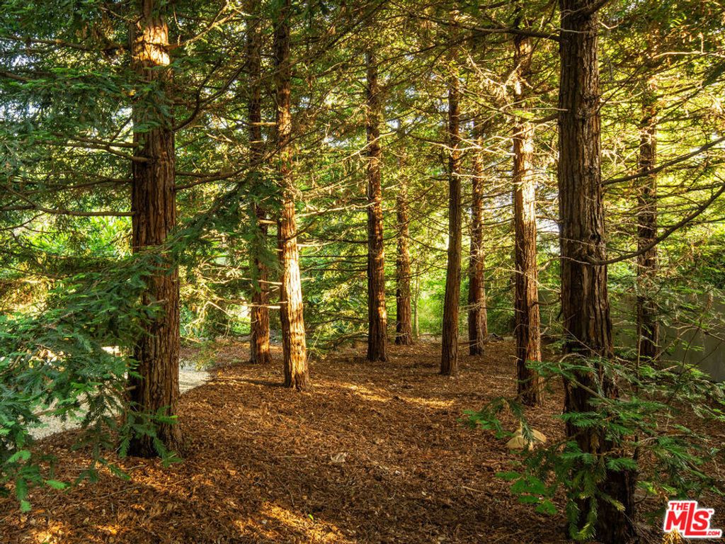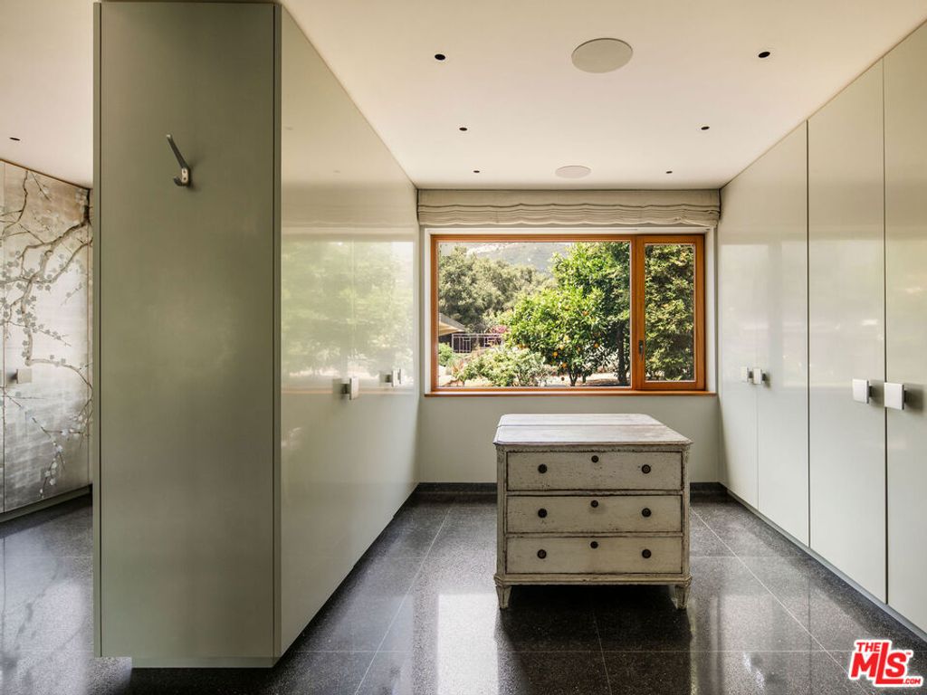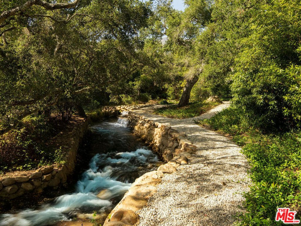 A rare midcentury modern architectural offering in the heart of Montecito, The Erving House, described as a "glass tent" by Time magazine in 1951,is a singular expression of architectural and landscape mastery, gracefully nestled on 2.7 acres of private, artfully curated grounds. Designed in 1950 by renowned architect Lutah Maria Riggs during her iconic modernist phase, and complemented by the legendary California landscape architect Thomas Church, this estate exemplifies the essence of indoor-outdoor living.Enter through private gates, where a meandering driveway weaves beneath a canopy of majestic oaks, setting a serene, cinematic approach to the residence. It culminates in a spacious motor court, where the home's striking flat-roof carport seamlessly marries form and function with timeless elegance.A covered walkway leads to the home's entrance, where a dramatic double-height foyer with floor-to-ceiling glass walls flood the space with natural light and frame expansive views of the surrounding landscape and mountains. This breathtaking entrance sets the tone for a home in constant dialogue with nature.The main living space unfolds with a soaring pitched ceiling, its apex seemingly reaching toward Montecito Peak, and a sculptural, biomorphic Santa Barbara stone fireplace, a subtle homage to Brazilian architect Oscar Niemeyer, Riggs' contemporary and collaborator. Walls of glass, both fixed and sliding, span the length of the room, opening to terraces and gardens and dissolving the boundaries between inside and out.The primary suite is a private retreat, featuring a spa-like bath, dual large dressing rooms, and tranquil views of the gardens and the coastal range. The home office offers inspiring solitude, framed by vistas of mature landscape and mountain ridgelines.The European-style kitchen is outfitted with custom Poggenpohl cabinetry and top-tier appliances, crafted with the serious chef in mind. The adjoining formal dining area also enjoys views of both the northern mountains and the home's terraced gardens and native flora beyond.Adjacent to the main house is a detached studio, providing flexible use, as a guest bedroom, creative workspace, or private retreat, its large windows revealing the natural beauty of mature oaks. Across the property is a serene 1-bedroom, 1-bath creekside guest house offering peaceful accommodations far enough from the main home to feel entirely its own.The grounds, once altered by previous owners,have been thoughtfully revived by landscape architect Susan Van Atta, who honored much of Church's original vision while adding her own artistry through native plantings. Wander through fruit orchards, lavender fields, and raised vegetable gardens, or enjoy a game at the bocce ball court, each element curated for both beauty, sustainability, and enjoyment.The Erving House is more than a residence, it is a living piece of architectural history and one of Montecito's most important homes. It offers unparalleled privacy, serenity, and a lifestyle that celebrates the seamless interplay between nature and design. Additional features include a high- functioning well with RO system for landscaping and a full power backup generator.