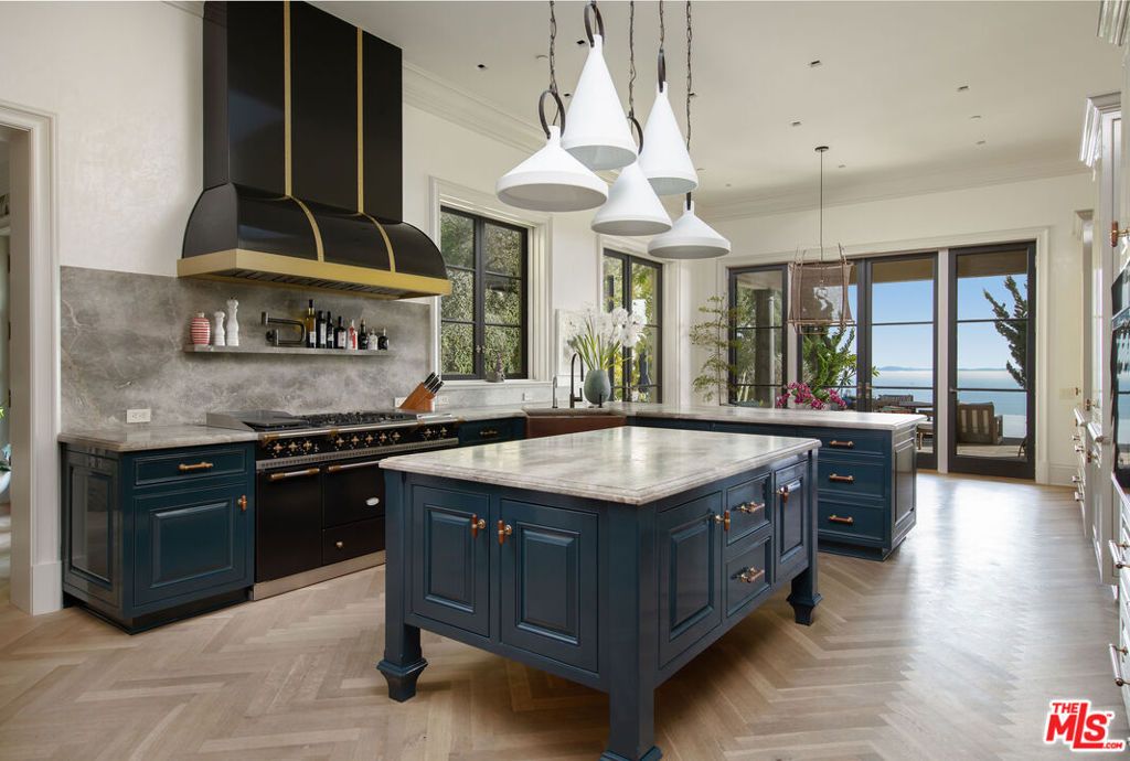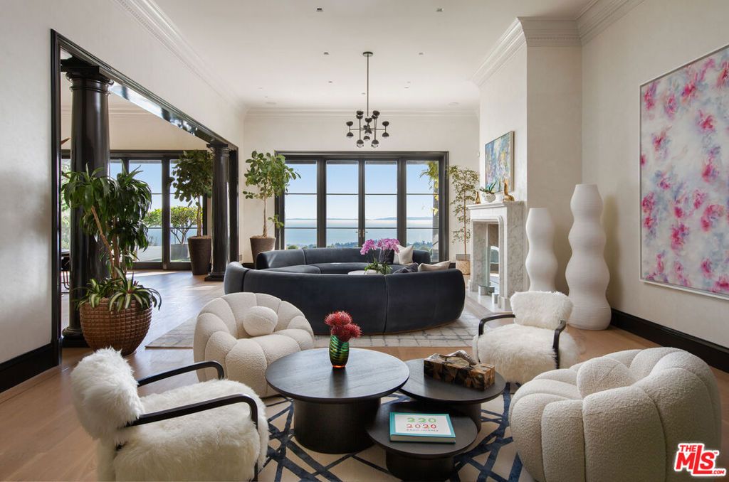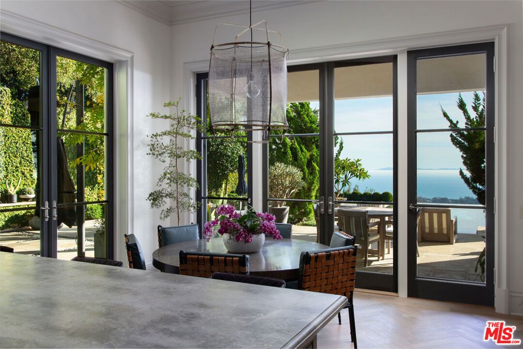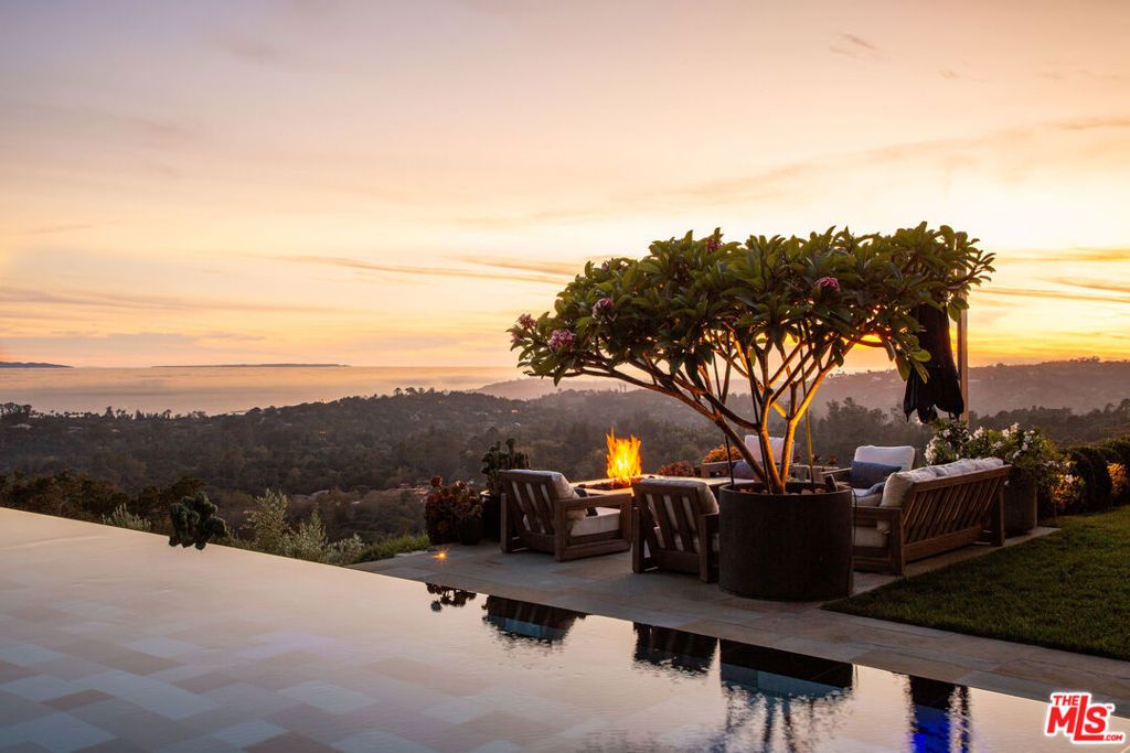 Masterfully built with expansive ocean, island, and mountain views, this contemporary Neoclassical-style residence is privately set in lush landscaping above East Mountain Drive on nearly six acres with a private well system. This sophisticated gated home features large-scale entertaining rooms with soaring ceilings and majestic gallery walls. Multiple sets of south-facing French doors open to breathtaking vistas and myriad outdoor entertaining spaces. Exquisite details combine to create an elegant and livable home with a main floor primary suite of dual baths and closets, three sumptuous guest suites, and an extraordinary infinity-edge pool. Located in a gated enclave of only three estates with a private well system.