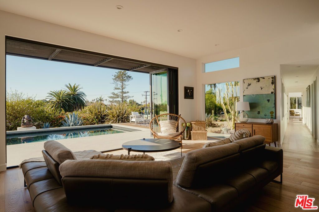 Set within a coveted enclave, 415 Yankee Farm is a private coastal retreat surrounded by one acre of curated gardens, patios, and ocean-view spaces, combining striking architecture with a luminous, glass-lined interior. Walls of glass frame the main living areas, showcasing sweeping ocean and island views and creating a seamless connection to expansive terraces and outdoor lounges. The spacious living room features a sleek fireplace and fully retractable doors that open to the pool, patios, and gardens. A defined dining area within the great room enjoys the same open views. The top-of-the-line kitchen by RD Homes includes a large center island with seating for six, premium finishes, and direct access to the outdoor fireplace lounge. Ocean and pool views enhance the kitchen's bright, inviting feel. The primary suite is privately positioned at the west end of the home with vaulted ceilings, its own patio, and garden and ocean views. The spa-style bath offers refined finishes, a walk-in shower, and a tranquil ambiance. Two guest bedrooms each feature sliding doors to the north gardens, creating a calm outdoor connection. The landscaped acre includes multiple fruit trees, mature avocado trees, and an array of Santa Barbara native plantings surrounding the pool, patios, and sitting areas. A charming shed offers convenient storage for beach gear. The 2-car garage includes an interior EV charger, along with an additional exterior charging station. Solar panels provide added energy efficiency. Located moments from Mesa amenities - Lazy Acres, local cafes, Hendry's Beach, the Douglas Preserve, and nearby shoreline paths, this property offers privacy, design, and convenience in one of the area's most desirable neighborhoods. Room for expansion adds valuable flexibility.