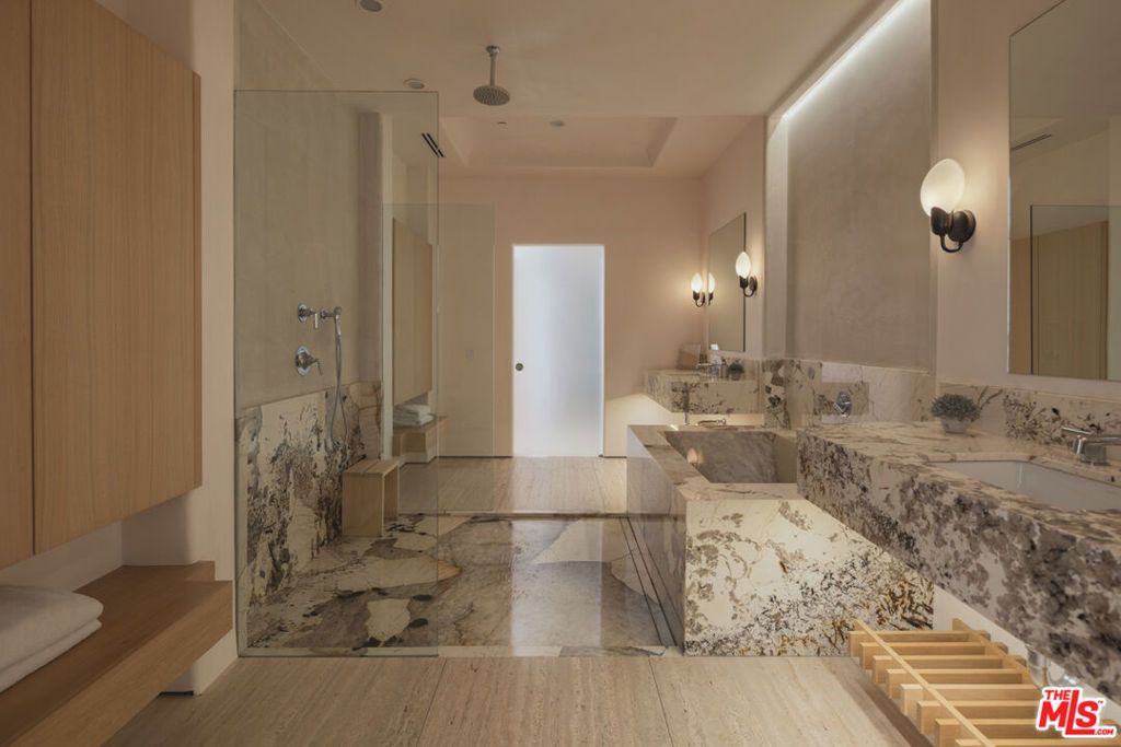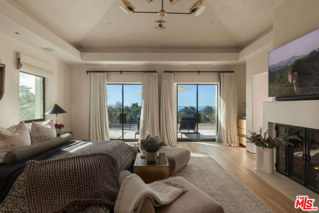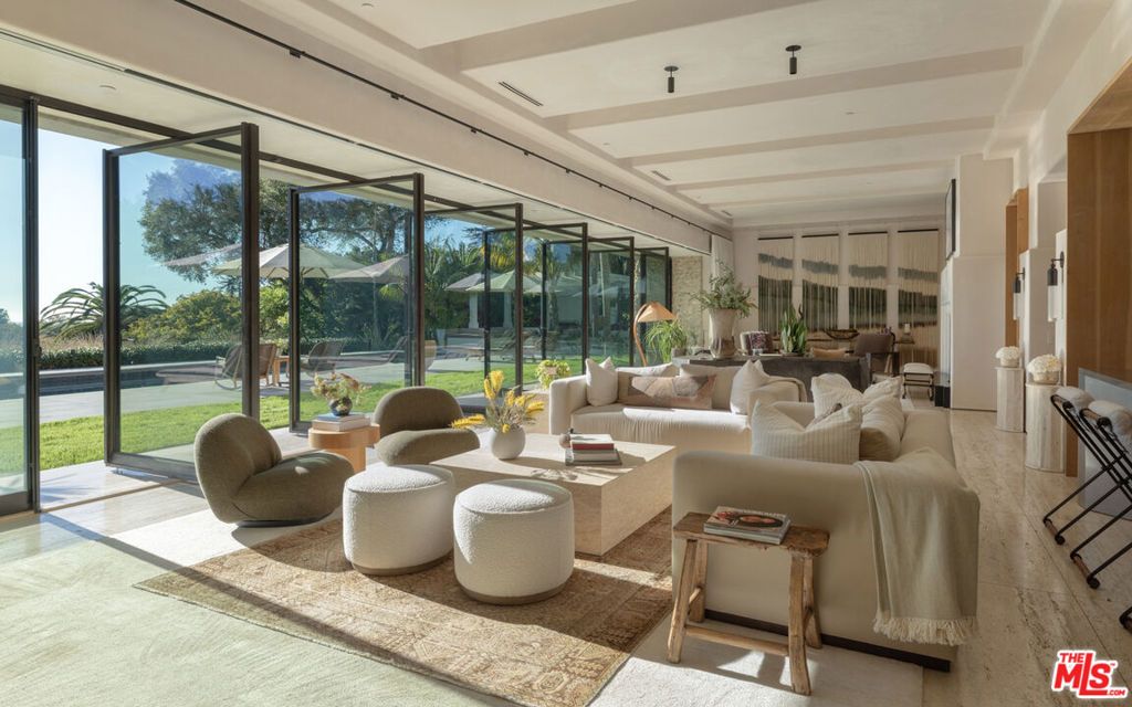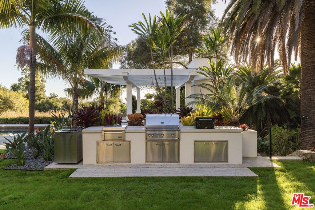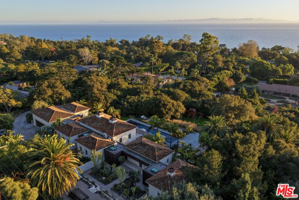 Perched above the coastline on 2.3 ocean-view acres in Hope Ranch, 4160 La Ladera Road is an architectural sanctuary where stone, light, and ocean views shape every moment. Thoughtfully composed, the estate blends contemporary Mediterranean lines with resort-style amenities to create a home that feels both sculptural and deeply livable. The entry is dramatic and processional. A double-height canyon of hand-laid limestone, framed by bold agaves and lush plantings, draws you in and guides you toward a glass-framed doorway with the first glimpse of the water beyond. Warm wood accents and carefully placed lighting amplify the sense of arrival and set the tone for what unfolds inside. Within, nature and architecture work in concert. Oversized pivoting iron-and-glass doors open the great room and main living areas to terraces, gardens, and the pool, turning the core of the home into a seamless indoor-outdoor pavilion. Long sightlines carry your eye to the horizon, while stone floors, high ceilings, and smooth plaster walls create a quiet, refined backdrop. The residence lives as three interrelated volumes. The lower level, wrapped in buff-colored Santa Barbara limestone, contains the primary gathering spaces and gives the structure a grounded, sculptural presence. Above, the upper floor is finished in light stucco and capped with a tile roof- a contemporary nod to Santa Barbara's Spanish heritage. A wide central corridor unites these spaces and makes the home feel expansive yet effortless to move through. At the heart of the plan, the kitchen and adjacent dining areas open directly to an ocean-facing terrace and the 75-foot swimming pool, so daily life and entertaining naturally spill outdoors. Sleek surfaces and professional-grade appliances are balanced by warm materials and ever-present views, creating a space that works as well for a quiet morning coffee as it does for a large gathering. Two primary suites offer distinct expressions of luxury: a main-floor suite with pivoting doors to the gardens and a spa-like bath with soaking tub and separate shower, and an upstairs suite with sweeping ocean vistas, custom designer closet and a sense of retreat. Additional en-suite bedrooms, an office, media room, and flexible spaces round out a floor plan that supports both privacy and connection. Outside, the estate lives like a private resort. The long pool and spa stretch along the horizon, bordered by generous terraces for lounging and dining. A modern open-air pavilion with a fireplace becomes the natural gathering spot at dusk. Bocce ball, courtyards, an orchard, and layered botanical and cactus gardens create a series of outdoor rooms to enjoy from morning to evening. A detached structure-currently used as an ocean-view gym-opens to its own terrace and captures the golden Santa Barbara light. A separate spa building with a sauna, a temperature controlled wine cellar, and thoughtfully curated landscape elements complete a property designed for both daily comfort and unforgettable stays. Set within the coveted enclave of Hope Ranch, with exclusive access to the residents-only beach and more than 20 miles of riding trails, 4160 La Ladera Road offers the privacy of a retreat with the ease of world-class coastal living.