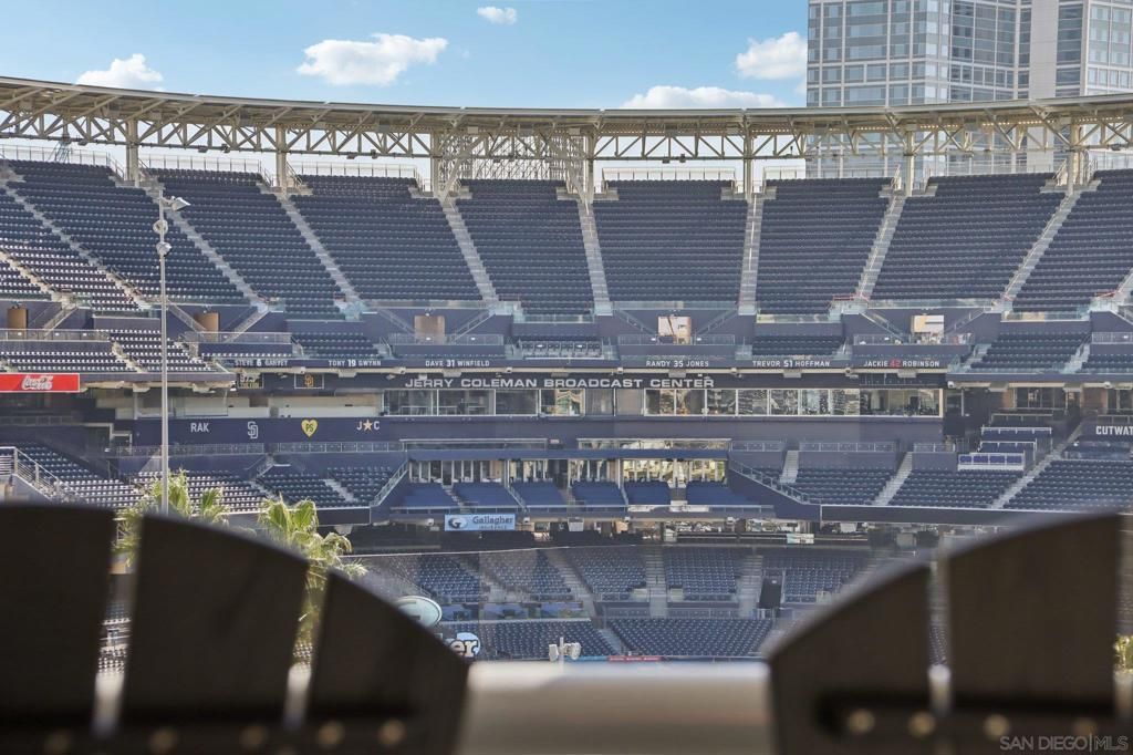 Step into a bright and inviting 1-bed, 1-bath condo in Diamond Terrace, one of East Village's most vibrant addresses. Floor-to-ceiling windows fill the home with natural light and frame views of the city, while the private balcony overlooks Petco Park, offering a front-row seat to the energy of the ballpark. Imagine enjoying morning coffee above the neighborhood or unwinding in the evening as the stadium lights glow and the sounds of the city drift below. Inside, the open living space flows into a kitchen with stone countertops and stainless steel appliances, with in-unit laundry and central air adding everyday comfort and convenience. Enjoy a spacious primary suite with access to the oversized bath from both the bedroom and living area. Diamond Terrace rises 14 stories with 113 residences and offers a secure lobby, underground parking, a fitness center, and a top-floor community room with an outdoor terrace and BBQ area, perfect for relaxing or gathering with friends while taking in sweeping views of the skyline. Located just steps from Petco Park, Gallagher Square, the Gaslamp Quarter, and countless restaurants, cafes, and nightlife options, this home places you in the heart of downtown San Diego. More than just a condo, it offers a lifestyle where ballgames, concerts, dining, and city life are all part of the everyday experience.