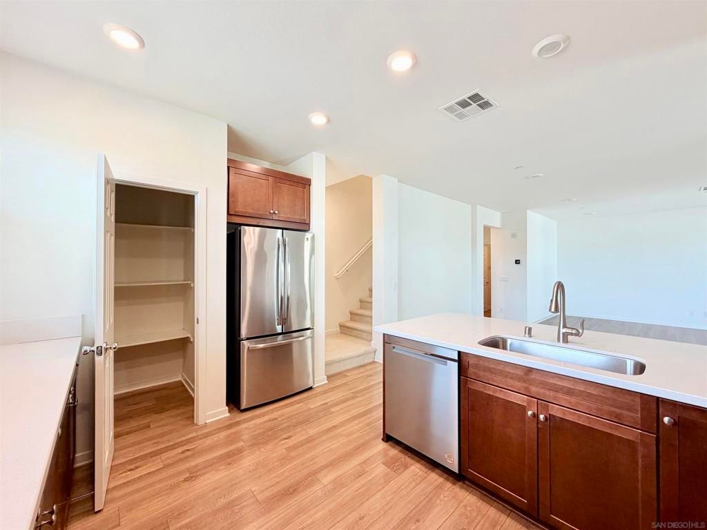 Beautiful newer townhome that is upgraded and well maintained. The entry level features a private bedroom, ideal for a home office, guests, a nanny, or multigenerational living. The second floor offers a spacious great room and modern kitchen with access to a balcony"”perfect for relaxing or entertaining. The kitchen includes a walk-in pantry, ample storage, and elegant quartz countertops. This light and bright home features an upstairs primary suite along with an additional bedroom. Refrigerator, washer, and dryer are included for added convenience. Conveniently located just minutes from Mission Hills High School, the SPRINTER light rail, California State Route 78, and California State University San Marcos.