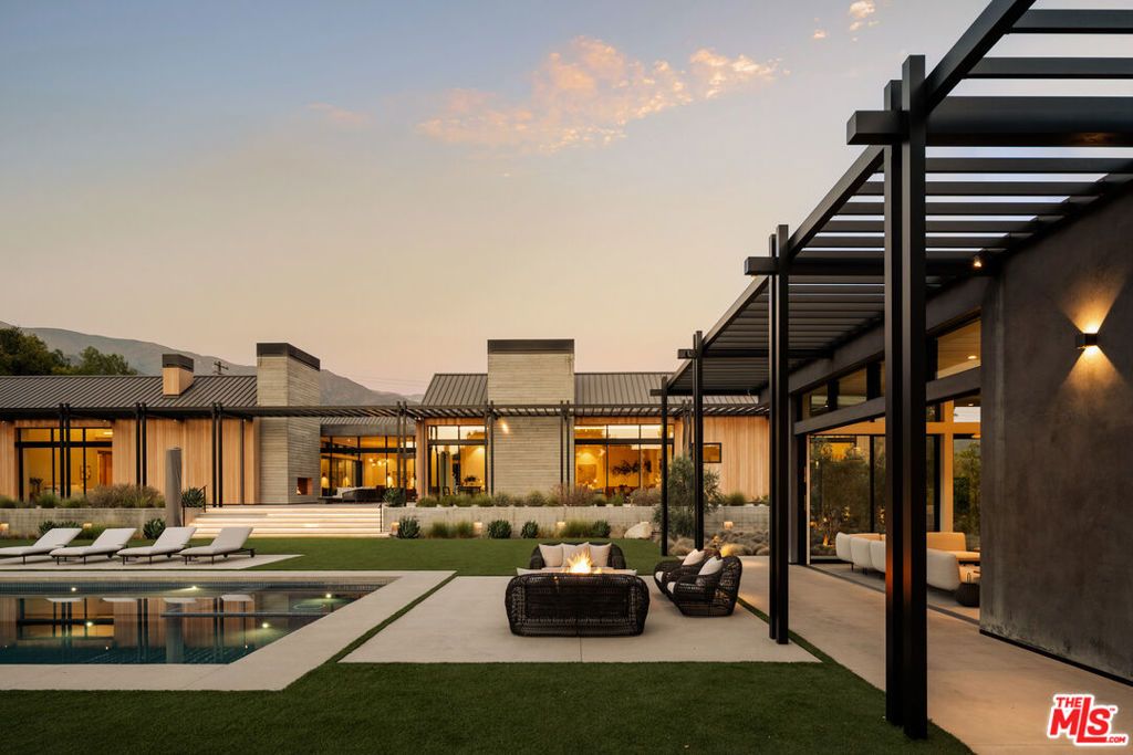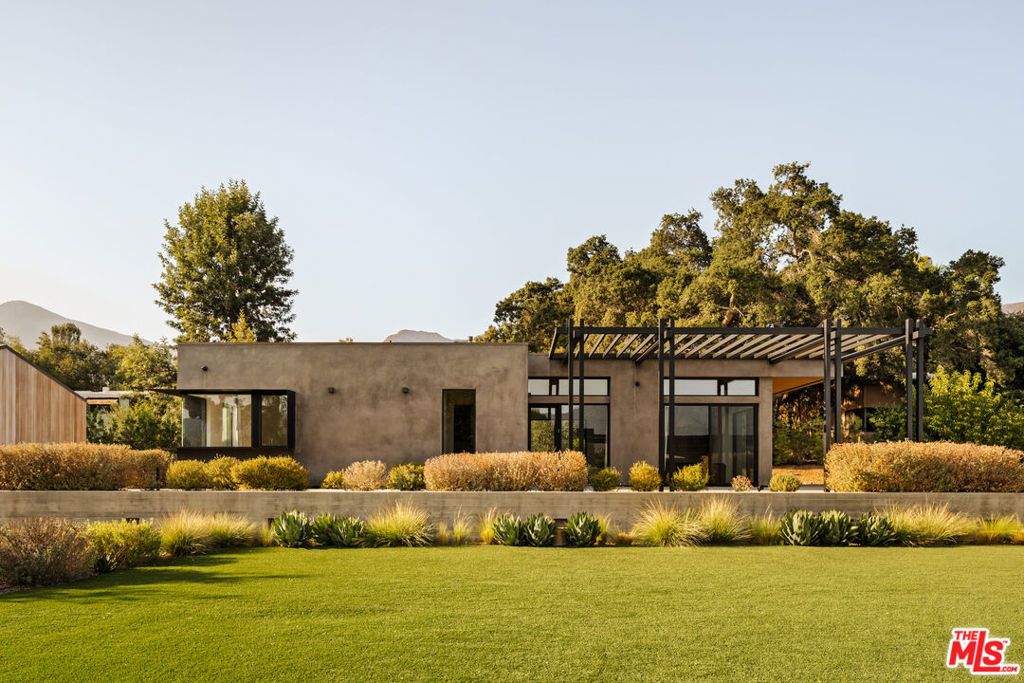 Sited on over 2.2 flat acres in prime Ojai Valley, The Shippee Estate is a rare opportunity to own a newly constructed architectural farmhouse compound featuring the highest level of finish and design in a uniquely serene setting. A product of 4 years of meticulous design and building by one of the country's most prolific builders, the estate features single-story living throughout its Main Residence, Guesthouses, Cabanas, and Workshops. This private retreat features 12-20ft ceilings, walls of glass, grand scale, perfect for entertaining, hosting, and living on all scales. The grand entry features a 12ft pivot door guiding you into an open-concept living space, with soaring ceilings and walls of glass that frame the surrounding landscape and zen-inspired courtyard featuring olive trees and native landscaping. Natural light floods the interiors, creating a seamless transition from the large public spaces to the grounds and outdoor spaces beyond. Premium materials and finishes are showcased throughout, including wide-plank white oak flooring, sandblasted limestone, imported Calacatta marble, and a chef's kitchen outfitted with professional-grade Miele, Wolf and Subzero appliances. The exterior is clad in warm cedar wood siding, enhancing the home's architectural character and blending seamlessly with the natural surroundings. Lighting and fixtures sourced from renowned designers Apparatus and Rejuvenation, further elevating the home's modern elegance with refined detail. Every element reflects a commitment to quality and craftsmanship, resulting in a residence that is both timeless and enduring. Interior features of the Main Residence include a resort-style primary suite, boutique-inspired walk-in closet, and spa-like bathroom with an additional private outdoor shower and garden. A secondary primary suite features soaring ceilings, cozy fireplace, and a sublime bathroom featuring soaking tub and rainfall shower. Featuring a thoughtful layout, the guest bedroom suites are complete with custom millwork, en-suite bathrooms, and serve as the perfect retreat for family and friends. Perfect for generational living or as the quintessential weekend or seasonal retreat, this is a true compound, featuring a variety of auxiliary structures such as a pool cabana, entertainment pavilion with indoor-outdoor kitchen s, outdoor kitchen, self-contained guest house, expansive studio space and additional detached garages. Primed for any car enthusiast, the home features finished garage spaces for ... cars with the height to support lift systems for additional vehicles. Outdoor amenities include various gardens, spacious patios ideal for entertaining, outdoor kitchen, high-quality and drought resistant turfed lawn, a resort style pool and spa, and lushly landscaped grounds. The property's flat acreage offers versatile potential, while its elevated position ensures year-round views of Ojai's iconic mountain backdrop. Located just minutes from downtown Ojai, residents will enjoy ideal proximity to hiking trails, renowned dining and boutiques, The Ojai Valley Inn, and a thriving arts community. 1225 Shippee Lane is more than a home - it is a refined retreat offering the ultimate in resort-style living in one of the West Coast's best destinations.