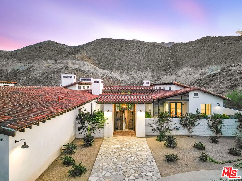 Situated at the end of a peaceful cul-de-sac in Rancho Mirage, this extraordinary 2+ acre California Spanish Estate known as "Kanyon Ranch"offers one of the most exceptional residential settings in the area. From the moment you arrive, the energy of the desert fades away, replaced by the serenity of your own private entertainer's paradise.Custom-built in 2019, the residence features four spacious en-suite bedrooms. A detached ADU with its own en-suite bath brings the total to five bedrooms and seven bathrooms, offering ideal accommodations for guests or extended family. Culinary enthusiasts will find true kitchen nirvana here. Designed for both everyday living and grand-scale entertaining, the chef's kitchen is equipped with multiple ovens, a wood-burning pizza oven, a salamander indoor grill, an open-hearth wood-burning oven, an oversized walk-in pantry, and temperature-controlled wine storage.Outdoors, the expansive and tranquil grounds stretch toward the dramatic Santa Rosa Mountain backdrop, creating a striking natural focal point. An open-air entertaining pavilion invites both lively celebrations and relaxed evenings, complete with a fully equipped outdoor kitchen designed for hosting unforgettable gatherings.The resort-style grounds feature a tiled pool and spa, an outdoor fireplace, a fire pit, and a full-size pickleball/sport court. Golf enthusiasts will appreciate the private one-hole golf course with a white sand bunker perfect for practicing chip shots. A 15-seat private theater provides a luxury viewing experience worthy of Hollywood premieres or binge-worthy series nights. The home is equipped with indoor and outdoor surround sound as well as a comprehensive security camera system, ensuring both entertainment and peace of mind.Ample parking includes an attached three-car air-conditioned garage and driveway space for approximately 20 additional vehicles. A secondary detached air-conditioned garage suited for an RV or 5 additional vehicles keeps every adventure within reach. This is a rare opportunity to own a truly one-of-a-kind desert retreat.