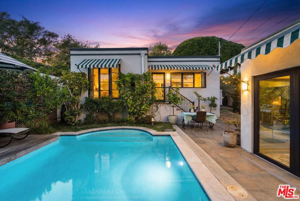 This enchanting, fully remodeled two-bedroom residence seamlessly blends modern sophistication with old-world romance, creating a home that feels both timeless and effortlessly stylish. Step into an inviting open-concept living space with a sleek, modern tiled fireplace that sets a warm and elegant tone. The stunning chef's kitchen flows beautifully into the main living area, designed for both everyday living and preparing exceptional gourmet meals. Both bedrooms are generously sized, with the serene primary suite overlooking the sparkling pool. Beyond the main house, a charming pool house opens to a private courtyard and a large pool of shimmering water. The result is a captivating indoor-outdoor setting, perfect for lingering evenings filled with wine, conversation, and the gentle California air. Surrounded by lush greenery, the property feels like a secluded boutique retreat - intimate, sophisticated, and effortlessly alluring. Just moments from the Sunset Strip, Santa Monica Blvd, Melrose Ave, and adjacent to Beverly Hills, this exceptional home places you within walking distance to world-class dining, shopping, and nightlife.