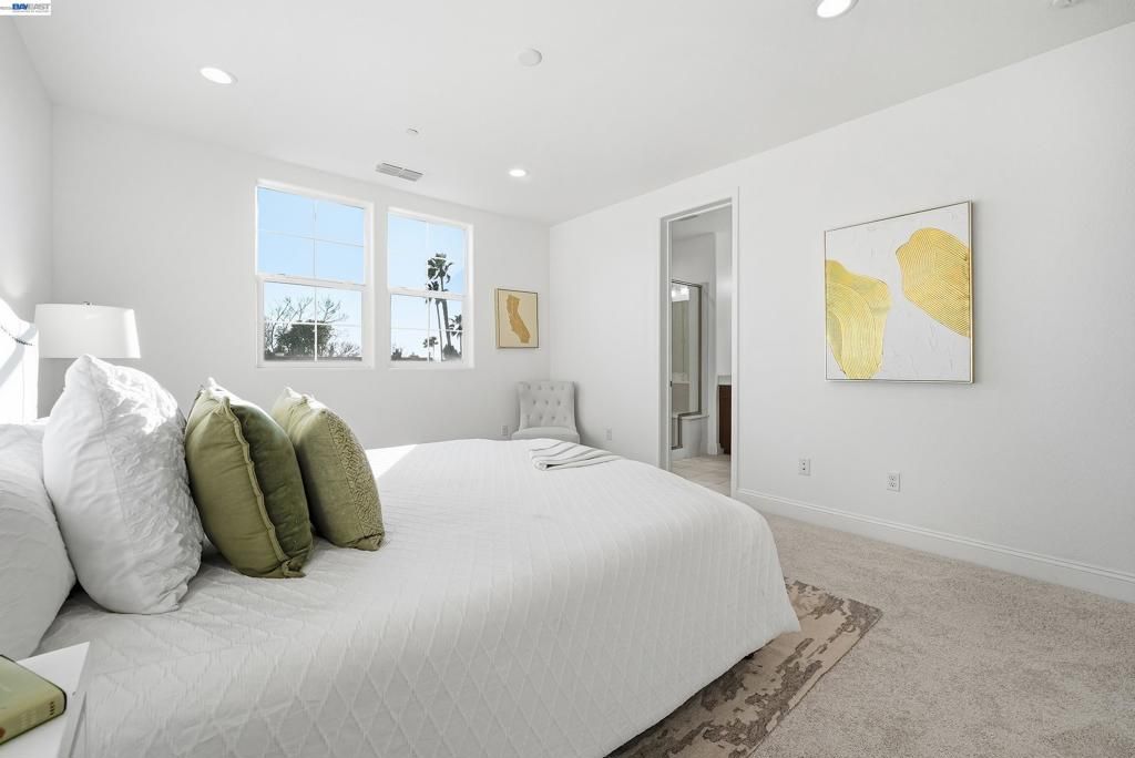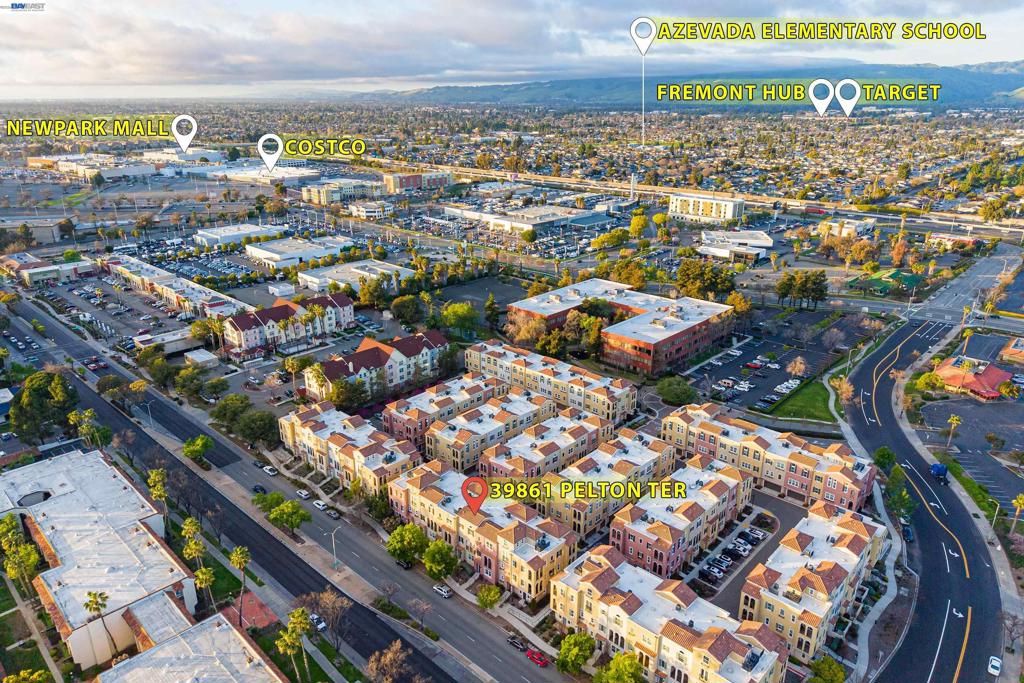 This highly sought-after luxury townhouse blends modern elegance, comfort, and everyday convenience in a beautifully designed open-concept floor plan. Built just 11 years ago, this spacious 2,114 sq. ft. home offers 4 beds, 3.5 baths, a 2-car garage, and low HOA dues. he main living area showcases soaring ceilings and an expansive living and dining space filled with natural light. The gourmet kitchen is a true centerpiece, featuring a large island, quartz countertops, stainless steel appliances, a gas cooktop, and seamless access great room and a covered balcony"”ideal for year-round enjoyment and entertaining. The primary suite offers a private retreat with an en-suite bath and generous walk-in closet. A desirable ground-floor bedroom with a full attached bath provides flexibility for guests, multigenerational living, or a home office. Additional highlights include recessed lighting, a dedicated laundry room, and an energy-efficient tankless water heater. Ideally located near Newpark Mall, with abundant shopping and dining options just moments away. Enjoy access to top-rated schools, convenient freeway connections to I-880, CA-84, and I-680, and proximity to major employers such as Tesla, Meta, Kaiser and Costco -Perfect combination of luxury, location, and lifestyle.