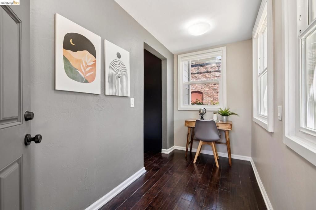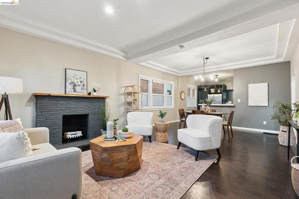 Berkeley Bungalow w/ Modern Flow, close to Berkeley Bowl West. Picket fence says "modern Craftsman-style," - Layout & upgrades say "contemporary East Bay living." Located in highly walkable/bikeable W. Berkeley, this 2-bed, 2-bath bungalow combines timeless character w/ thoughtful updates designed for today's lifestyle. Remodeled inside & out, the home invites you up a landscaped path to a brick porch. Open-concept living, dining, & kitchen area flows seamlessly to private, low-maintenance yard w/ flexible sitting area for relaxing or secure parking pad. Office nook for additional work space off kitchen. Remodeled kitchen features SS appliances, gas range, dishwasher, breakfast bar & stacked washer/dryer. 2 well-sized bedrooms include true primary suite w/ generous closet & updated en-suite bath w/ walk-in shower. 2nd full guest bath w/ modern finishes & floating shelves. Interior details w/ engineered wood flooring throughout, dual-pane windows w/ coverings, trayed ceilings, & stylish designer lighting. Long shared driveway leads to private parking pad behind wide gate for vehiclular access. Walk & Bike Score of 93. Steps from neighborhood faves like Caffe Chiave, Anchalee Thai, Tipsy Yeti. 10-min bike ride to Ashby BART or UC Berkeley or B.Bowl West. BESO Energy Score = 4