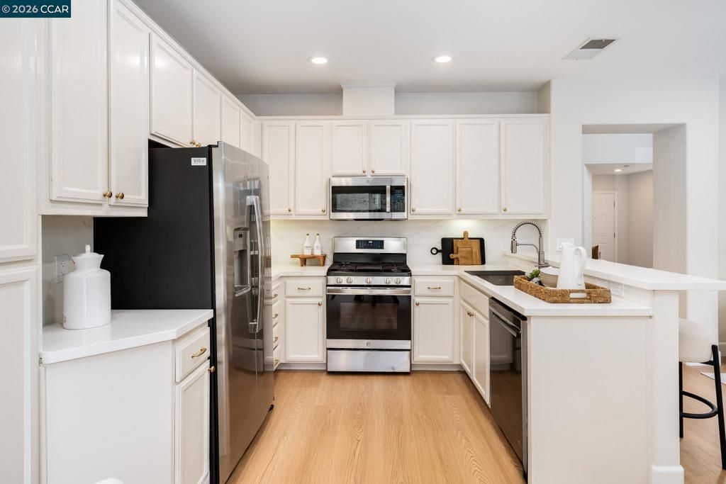 This beautifully updated home is located in the desirable Cambrio neighborhood, offering convenient freeway access, within the award-winning San Ramon Valley School District, and close proximity to shopping/dining at the City Center and Downtown Danville. The interior features newly installed flooring with new baseboards, fresh paint, custom light fixtures, new retrofit recessed lighting throughout, soaring ceilings, and an abundance of natural light. The formal living and dining rooms provide elegant entertaining spaces, while the upgraded kitchen showcases newly installed quartz countertops and backsplash, freshly painted cabinetry with new hardware, bar seating, and stainless steel appliances including dishwasher, stove/oven, and microwave. The kitchen opens seamlessly to the family room, creating an ideal layout for everyday living. Upstairs includes a convenient laundry room and a spacious primary suite with vaulted ceilings and a walk-in closet. The upper level is complete with 3 spacious secondary bedrooms and shared hallway bath. The low-maintenance backyard offers privacy with no rear neighbors, and residents enjoy access to a community pool"”perfect for relaxing and entertaining.