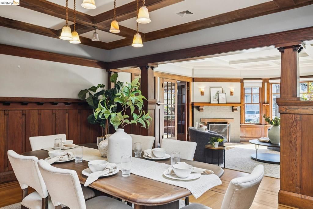 A truly exceptional Arts and Crafts level-living bungalow + a permitted, modern, level-in ADU, in an ideal Rockridge location. To quote Henry L. Wilson, architect and author of The Bungalow Book, "Cozy, charming and distinctly Californian, the bungalow is an enduring architectural icon." Renovated by Jarvis Architects, the gorgeous wood paneling, wainscoting, stained glass windows and built-in cabinetry create a warm and gracious environment, while the modernized kitchen & bathroom assure comfortable contemporary living. Lovely, mature gardens in front and rear ideal for having small gatherings. Level-in, spectacular detached ADU in backyard with exposed wood beams includes kitchen and bathroom. The shared driveway has space to park one car, without blocking the neighbor (owner had a Toyota Rav-4 that fit, buyer to verify size of their car). Large attic with plywood provides critical storage space. Moments to all of the very best of Oakland and Berkeley, and only blocks to Rockridge BART and transbay buses for commuting. A truly special place to call home.