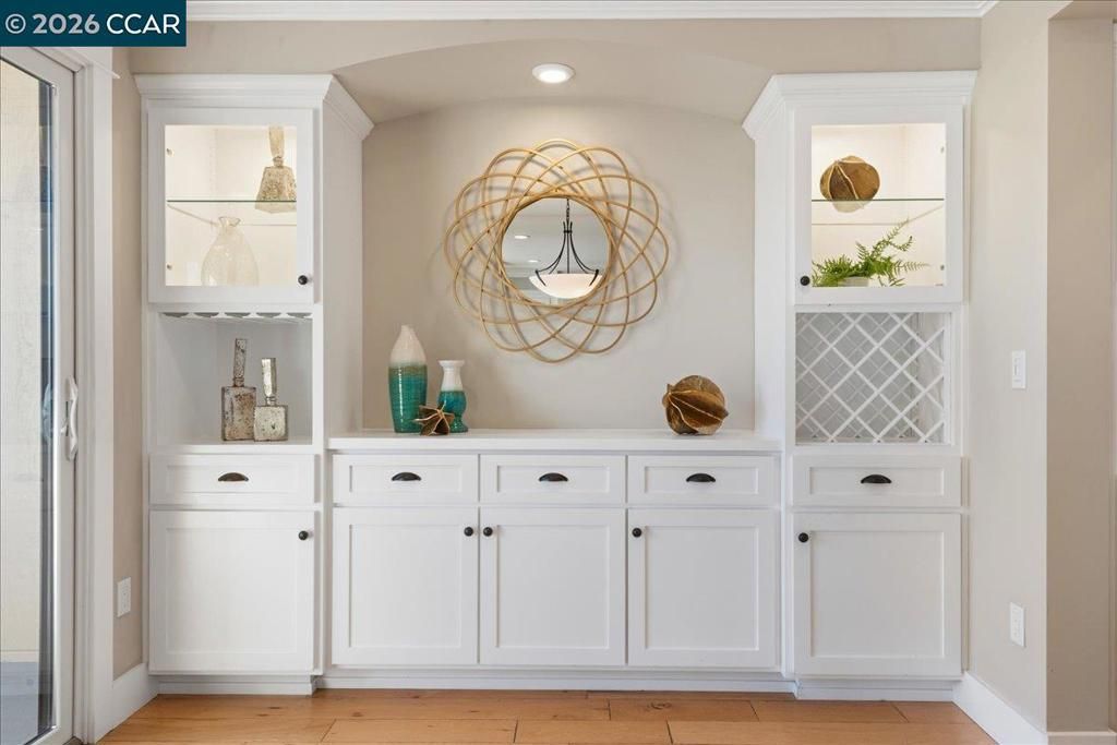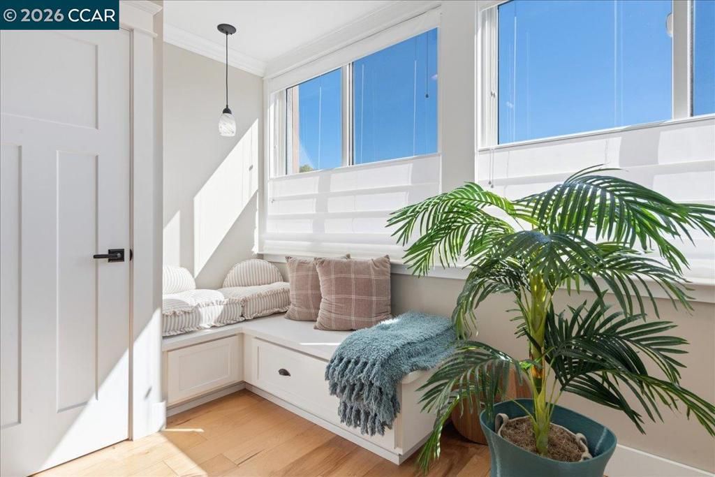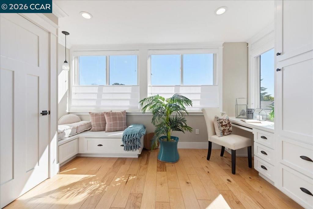 Beautifully remodeled Sonoma model with designer finishes in the sought-after 55+ community of Rossmoor. This light-filled home features an upgraded chef's kitchen with stainless steel appliances, stone countertops, under-cabinet lighting, and custom wood and tile flooring flowing throughout the home. Elegant details include recessed lighting, coved ceilings, window treatments, and a cozy electric fireplace. The extended living room offers a versatile enclosed space ideal for a home office, hobby room, or craft studio, plus access to an open balcony perfect for enjoying sunshine and peaceful views. The spa-style bathrooms include a large stall shower in the primary suite and a jetted walk-in tub in the guest bath for comfort and accessibility. Conveniently located close to the carport, this home is part of the vibrant Rossmoor lifestyle featuring golf, pickleball, tennis, lawn bowling, hiking trails, swimming pools, fitness center, and more than 230 clubs and social activities. Experience resort-style living in one of Walnut Creek's premier active-adult communities.