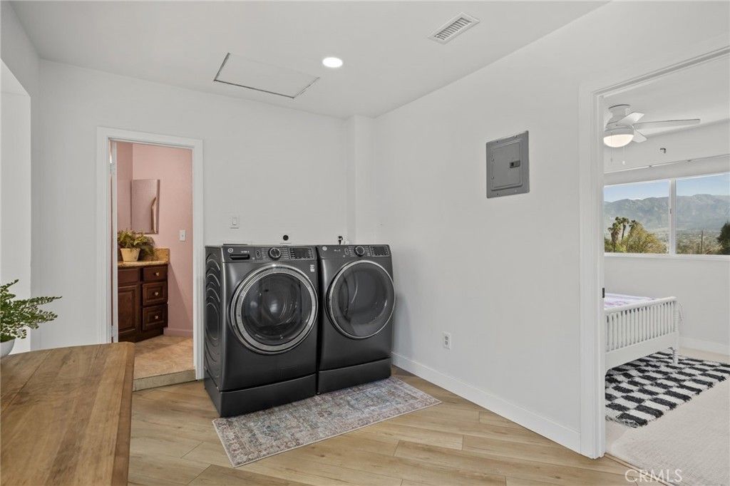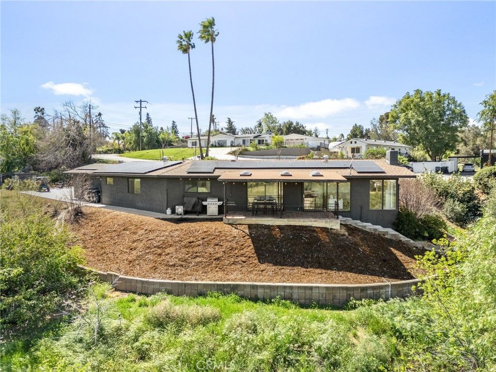 Perched at the end of a quiet cul-de-sac in the hills of Redlands, this beautifully remodeled single-level home sits on over an acre and offers privacy along with breathtaking panoramic views of the city and surrounding hills. Recently updated with new luxury vinyl flooring, an upgraded kitchen, and remodeled bathrooms, the home blends modern comfort with timeless style. Step inside to a true culinary dream of a kitchen, offering ample cabinet and countertop space, luxury appliances, and picturesque windows that perfectly frame the stunning views beyond. The adjacent living room continues to showcase these incredible vistas and features a cozy fireplace, creating the perfect setting for relaxing evenings or movie nights with family and friends. The luxurious executive suite serves as a private retreat, featuring direct access to the covered patio and beautiful picture views. The attached spa-inspired bathroom showcases a massive walk-in shower, dual sinks, and new tile finishes. Three additional bedrooms and two full bathrooms provide plenty of space for family or guests, including one bedroom with its own attached bathroom for added privacy. A conveniently located laundry room sits near two of the bedrooms. Thoughtful built-ins add both function and luxury, including a mudroom area with coat hooks, bench seating, and storage. Just adjacent is a built-in coffee or beverage bar featuring two wine refrigerators, additional cabinetry, and counter space, adding a sophisticated touch ideal for entertaining. Step outside to an expansive backyard designed for both relaxation and recreation. A huge patio area is perfect for alfresco dining, gathering around the fire pit, or enjoying outdoor activities like riding bikes or scooters. A covered patio off the living room and kitchen provides the perfect space to unwind while taking in the sweeping views across the property and city below. The acre-plus lot offers room for horses and includes additional access to the lower portion of the property, making it convenient for RV storage, trailers, or equestrian use. A storage shed adds extra utility. We have drafts on file for future pool enthusiasts as well! The property also benefits from private water shares through Western Resource Water, offering a more cost-effective option for landscaping, while solar panels provide energy efficiency. Don't miss this rare opportunity to own a private, view-filled South Redlands home with space, style, and endless possibilities.