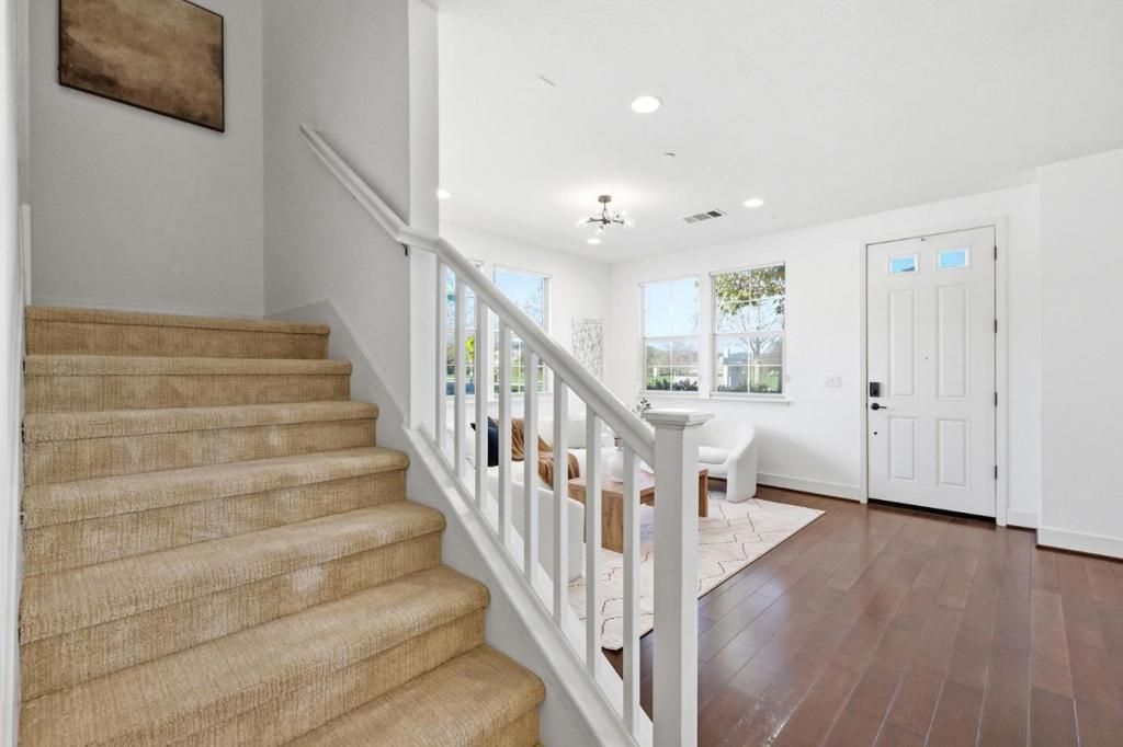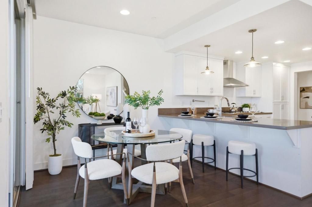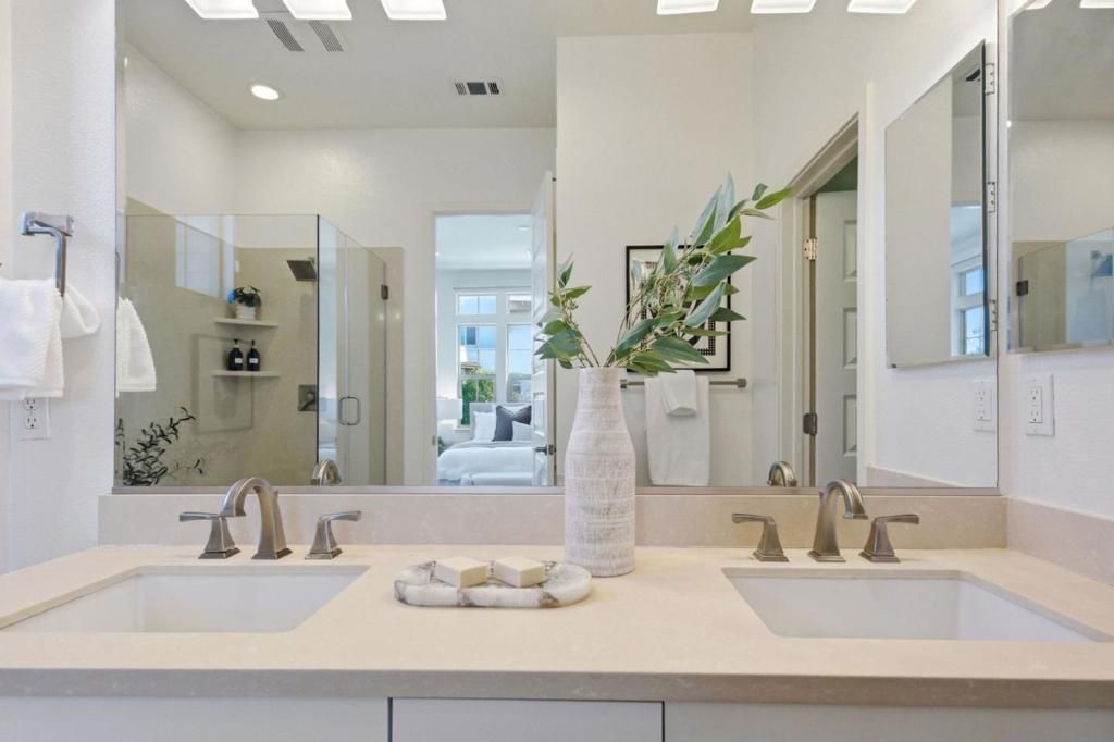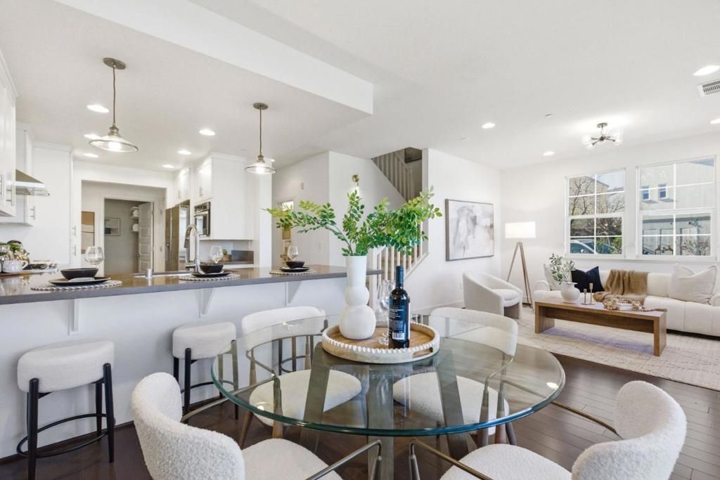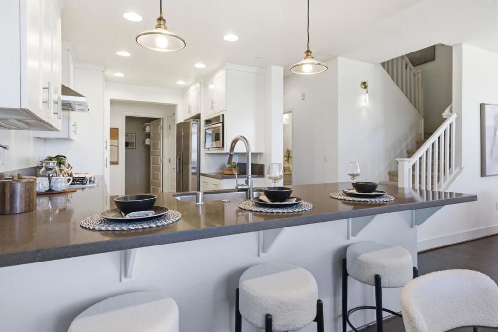 End-unit 2-floor townhome overlooking Bay Meadows Park on E 28th with unobstructed park views. Open main floor with living, dining, kitchen, laundry room and large bedroom suite with full and half bath naturally flowing from one room to the next on the first floor. Upgrades include quartz counters, brand new blinds, designer lighting fixtures, a large island, and custom pull-out cabinets. Upstairs there are 2 additional bedroom suites with generous storage. Mastersuite features a large walk-in closet with deluxe organizers, double vanities, and shower with large bathtub and separate toilet stall for privacy. 11 ceilings, recessed lighting with dimmers, new high-end fixtures and ethernet wiring. Large extra long 2-car tandem garage with extra motorcycle parking or storage area. Coveted Bay Meadows location and low HOA fee of $560/month which covers water and exterior. A short walk to Hillsdale Mall, Caltrain baby bullet station, multiple parks, Nueva School, Whole Foods, Blue Bottle Coffee, Fieldwork Beer Garden, and many more.