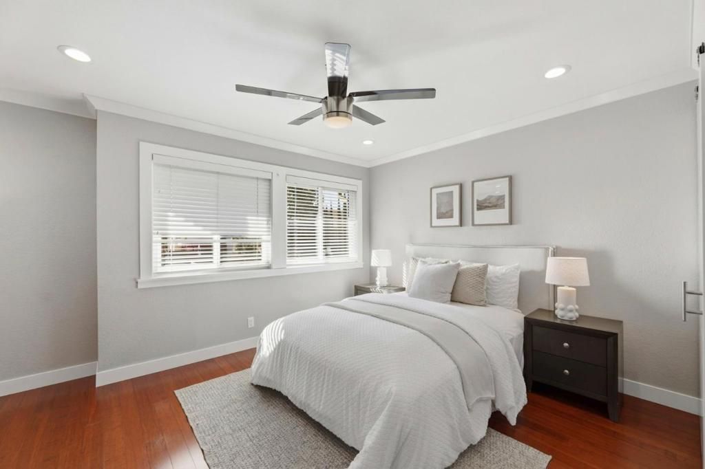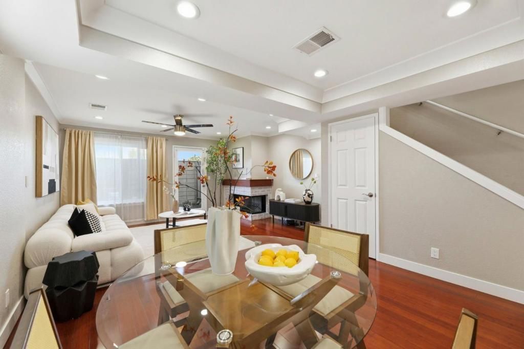Stunning corner-unit townhome in prime Santa Clara offering 2 bedrooms, 2.5 bathrooms, and 1,125 sq. ft. of modern living space. Sun-filled interiors feature abundant windows, hardwood flooring, and a welcoming living room with a cozy wood-burning fireplace. The open-concept layout is perfect for entertaining, with a dining area, powder room with in-unit washer/dryer, and a private patio for relaxing and outdoor enjoyment. The gourmet-style kitchen showcase contemporary cabinetry, quartz countertops, and stainless steel appliances. Upstairs, two spacious primary suites each offer beautifully updated bathrooms for comfort and privacy. Smart home features, recessed LED lighting, attic storage flooring, and newly upgraded double-pane windows enhance convenience and energy efficiency. Enjoy resort-style community amenities including a pool, spa/hot tub, lush greenbelts, and secure gated entry. Two underground parking spaces plus two visitor parking spaces in front of the unit. Ideal as a primary residence or investment opportunitythis is the one youve been waiting for!