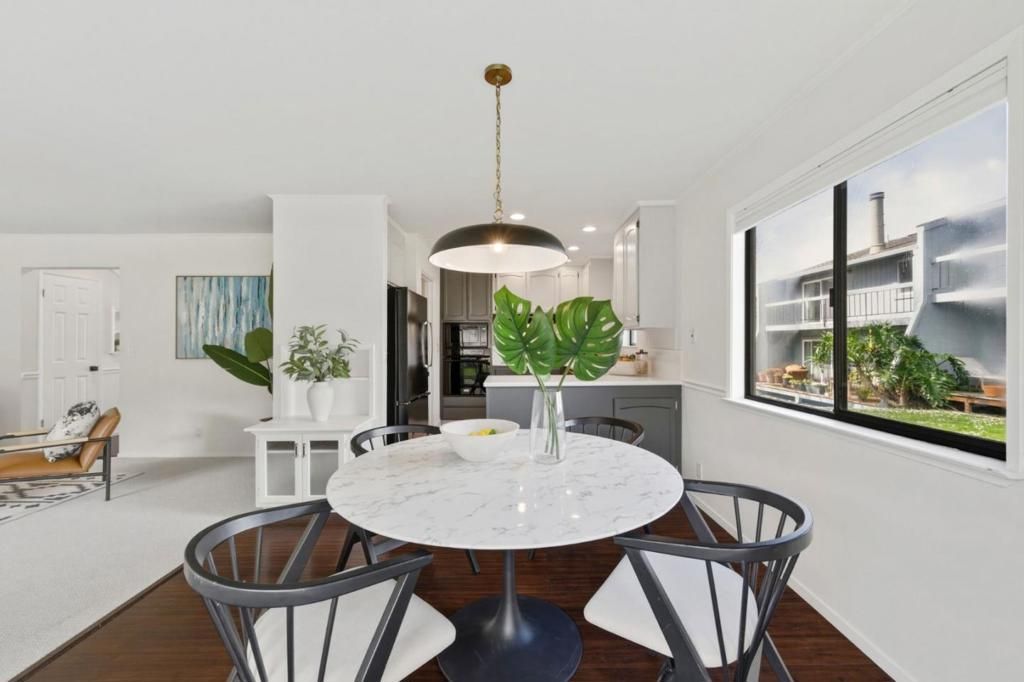 Welcome to 2831 Casa De Vida Drive, a beautifully maintained end-unit planned unit development in the heart of Aptos, where comfort and easy coastal living come together. This 2-bedroom, 2.5-bath home offers 1,322 square feet of thoughtfully designed space with a bright and welcoming feel throughout. Step inside to an impressive two-story foyer with vaulted ceilings and abundant natural light. The living room features brand new carpet, large windows, and a cozy wood-burning fireplace with custom tile hearth, along with charming built-ins and a desk nook perfect for working from home. The spacious main level is ideal for both everyday living and entertaining, with the living, dining, and kitchen areas flowing comfortably together. A large sliding glass door fills the space with natural light and opens to a private patio overlooking a peaceful greenbelt, creating an inviting indoor-outdoor connection. Upstairs, the spacious primary suite offers its own private deck, en-suite bath, and generous closet space. A second bedroom and full hall bath complete the upper level. Additional highlights include new carpet, central heat, and an attached two-car garage with laundry and ample storage. Located just minutes from Aptos Village, Seacliff Beach and Cabrillo College.