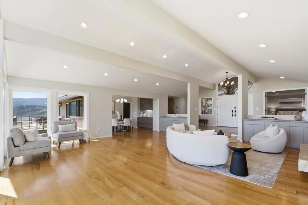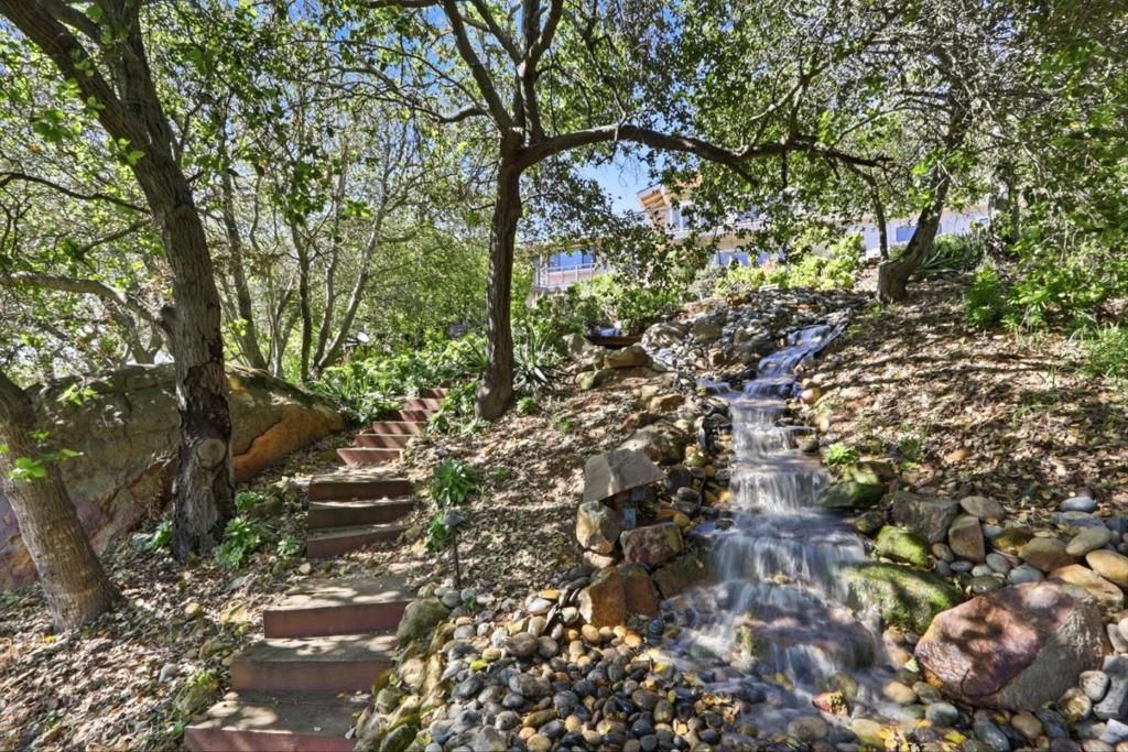 The most spectacular views in all of Almaden Valley! This extraordinary gated estate offers a rare combination of luxury, privacy, and resort-inspired living in a truly breathtaking setting. Five bedrooms, 3.5 baths, 4389sf on 2.3acres with pool, tennis court, walking trail, water fall feature and workout room. Additional full bath in cabana. Lots of outdoor spaces to entertain or just relax and enjoy the views. You can also split the lot and build a second home. The ground floor bedroom does not have a closet but has space to install one. Magnificent living room, where soaring vaulted ceilings, recessed lighting, integrated speakers, and floor-to-ceiling windows with transoms frame breathtaking views. Beautifully appointed chefs kitchen, showcasing sleek Foresta European-style cabinetry, quartz slab countertops and backsplash, and a full wall of additional cabinetry for exceptional storage. Premium stainless appliances include a Sub-Zero side-by-side refrigerator and freezer, Thermador double ovens with a warming drawer and a Viking six-burner gas cooktop set within a dramatic quartz waterfall-edge island. Outdoors, the resort-style grounds create a private oasis designed for both grand entertaining and peaceful retreat. Schools: Graystone, Bret Harte, Leland.
