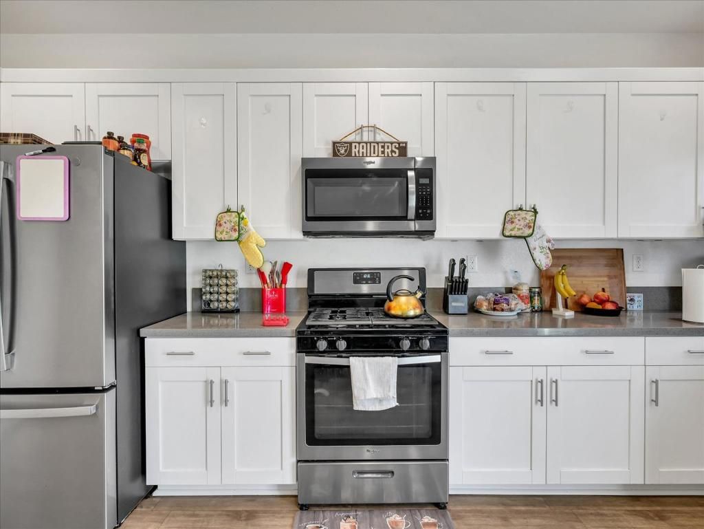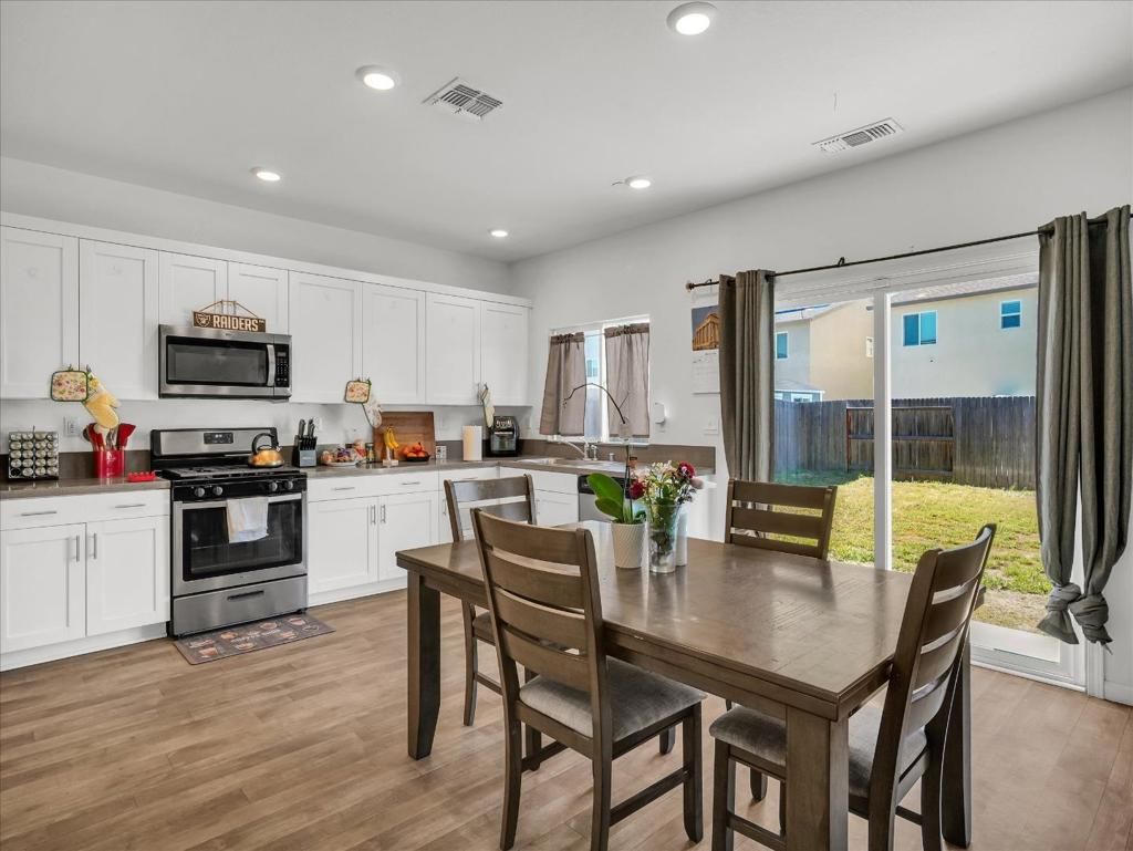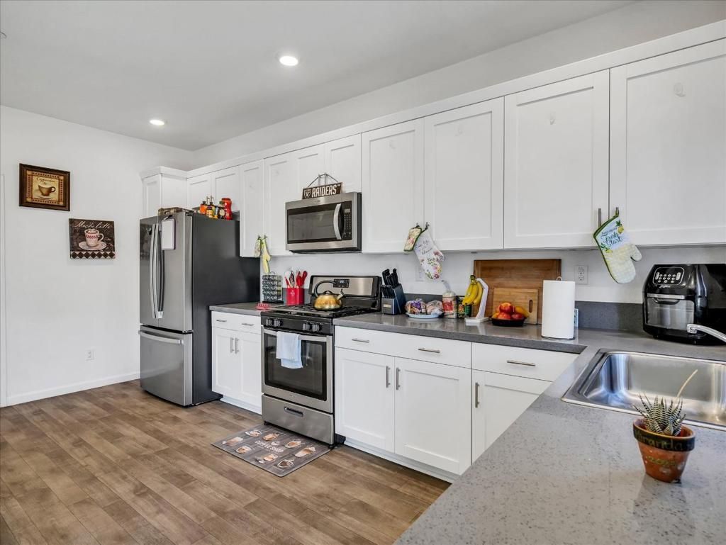 Welcome to 1415 Crimson Ln, Manteca, CA 95336 a modern single-family home offering comfort and style. Solar paid off !!! Built in 2022, this residence boasts 4 bedrooms and 2.5 bathrooms across 1,678 square feet of living space; The open-concept layout creating a spacious and inviting atmosphere. The gourmet kitchen is equipped with white shaker-style cabinets, quartz countertops in iced-gray, stainless steel appliances, Etc. Upstairs, you'll find generously sized bedrooms, including a master suite with a walk-in closet and a luxurious en-suite bathroom. The home is adorned with luxury vinyl plank flooring throughout and includes smart features for modern living, two-car attached garage and a landscaped front yard. Located in Manteca's desirable North Main neighborhood that offers convenient access to local schools, shopping centers with a gorgeous Community park near 99 & 120 HWY Perfect for commuters.