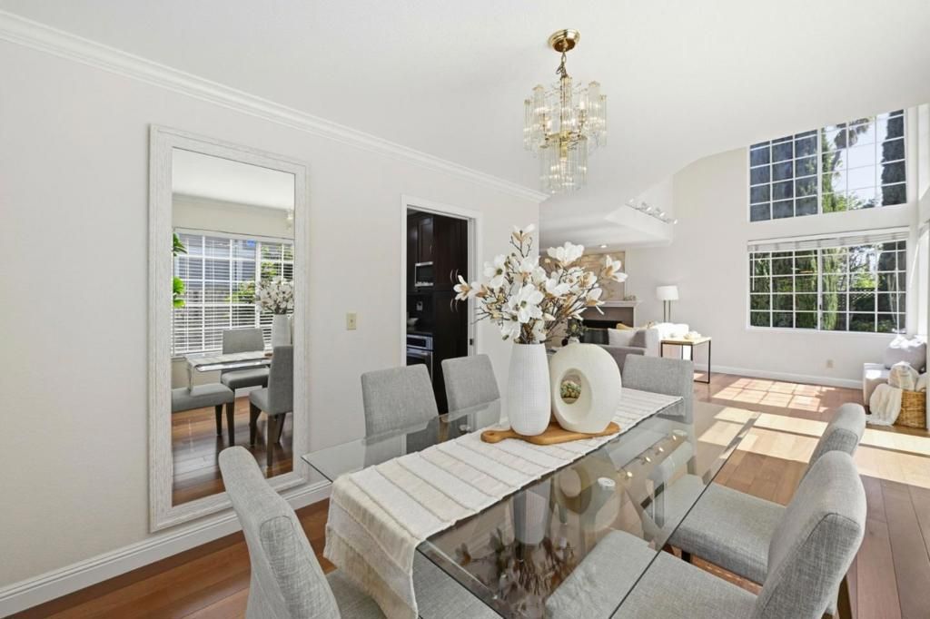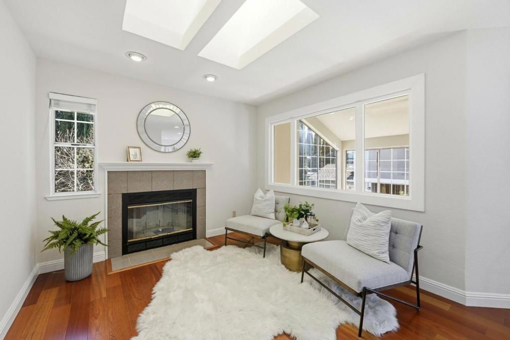 Tucked at the end of a private enclave on McAbee Road, this beautifully appointed two-level home offers 3 bedrooms, 2.5 baths with 2,243± square feet of thoughtfully designed living space on a generous lot. From the moment you arrive, the meticulously landscaped front yard, complete with river rock accents, roses, and a graceful Japanese maple, sets a tone of elegance and care. Inside, rich Brazilian Cherry hardwood floors, crown molding, and abundant natural light create warm, inviting living spaces, while the gourmet kitchen shines with cherry cabinetry, granite slab countertops, and premium stainless-steel appliances. The luxurious primary suite features a cozy fireplace, skylights, a spa-inspired bath with a deep soaking tub and rain shower, and serene hillside views. Outdoors, enjoy a private retreat enhanced by flagstone accents, multiple fruit trees, and inviting spaces perfect for relaxing or entertaining, all with convenient access to nearby schools, parks, trails, and shopping.