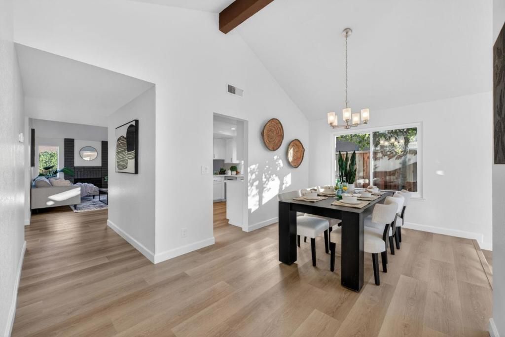 Welcome to 4101 Ashbrook Circle, a beautifully updated 4-bedroom + office, 2-bath home in the heart of Cambrian Park with 2,118 sq ft of light-filled living space. Vaulted ceilings and expansive windows showcase a versatile single level floorplan with a welcoming living room, cozy fireplace, and easy flow to the dining area and kitchen ideal for everyday living and entertaining. Recent upgrades include fresh interior paint, LED recessed lights, plush new carpet in all bedrooms, and new LVP flooring throughout the main living areas. The bright kitchen features quartz countertops, refreshed cabinetry, new stainless steel appliances, and a bay window over the sink. Added in 2001, a permitted bonus room with direct access to the primary suite offers flexible space for a home office, nursery, den, or reading room. Enjoy central A/C, forced-air heat, and an attached 2-car garage. The backyard is perfect for relaxing and gathering with a spacious paver patio, stone retaining wall, and mature vines and flowering landscaping. Ideally located near the Los Gatos Creek Trail and 1.5 blocks to Hogue Park, with convenient access to shopping, freeways, and downtown Campbell and Los Gatos. Award-winning schools include Farnham Elementary, Price Charter Middle, Leigh High / Branham High School.