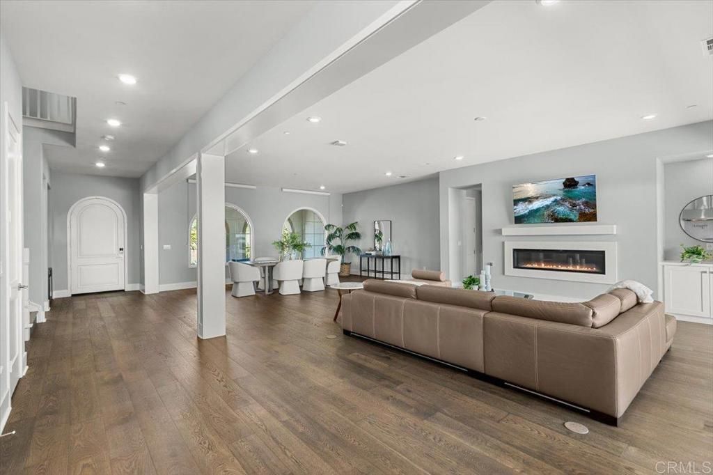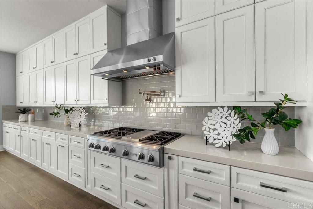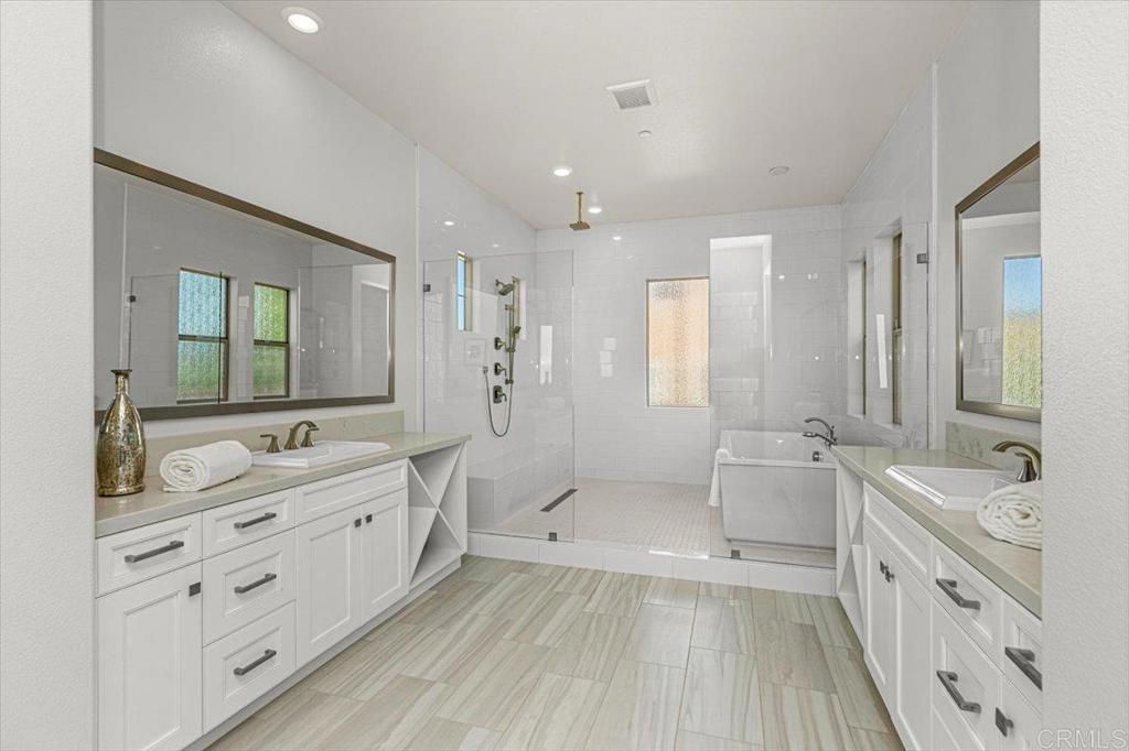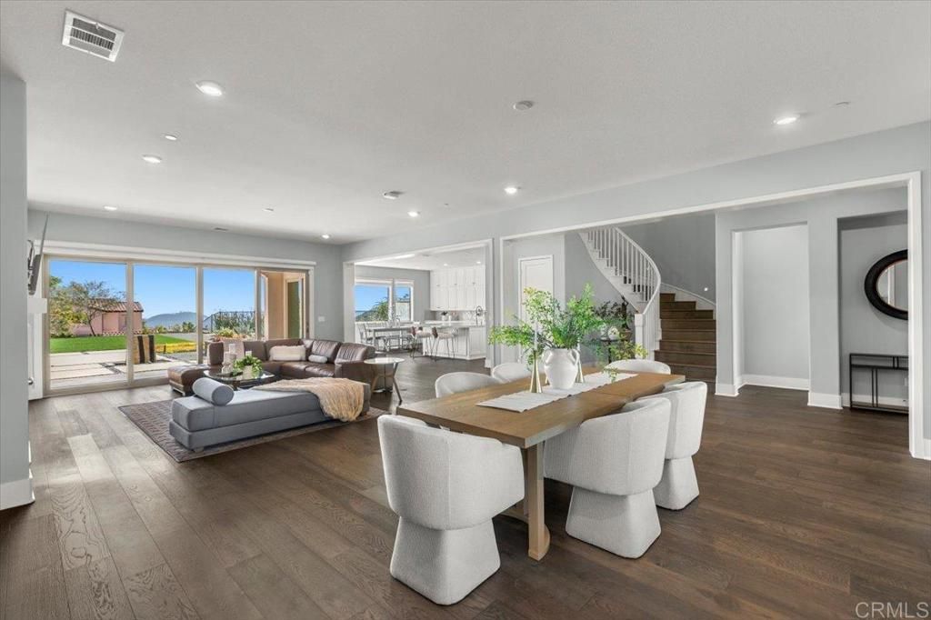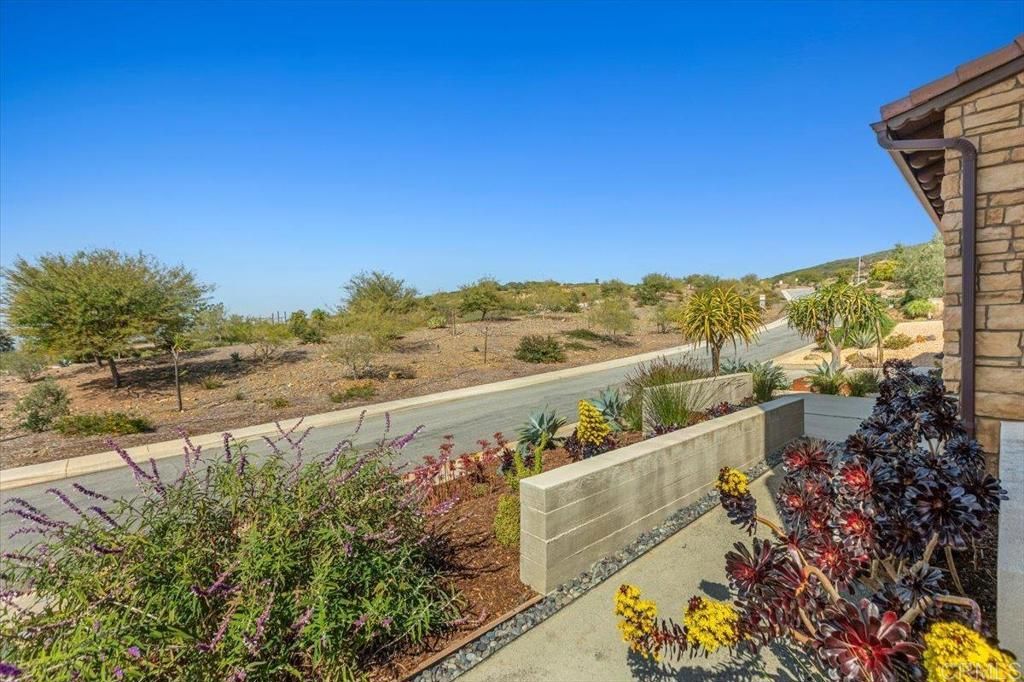 Beautifully upgraded and impeccably maintained, this exceptional 5-bedroom home in the highly sought-after gated community of The Estates in San Elijo Hills offers elegant design, a thoughtfully crafted floor plan, and inviting spaces designed for comfortable everyday living! Designed with entertaining and everyday living in mind, the home's layout, indoor-outdoor flow, and versatile gathering spaces create a lifestyle that is both comfortable and uniquely functional. Built in 2018 and offering approximately 4,813 sq ft with 5 bedrooms and 5.5 baths, the home sits on a nearly half-acre lot (20,512 sq ft) on a single-loaded street directly across from hiking and biking trails, providing privacy, open space, and scenic valley views. From the moment you enter, the home showcases rich wood flooring, designer finishes, and abundant natural light, with spacious living areas designed for comfort and connection. The upgraded gourmet kitchen anchors the home with quartz countertops, stainless appliances, a large center island, abundant cabinetry, and a generous walk-in pantry, flowing seamlessly into the family room where expansive folding glass doors open to the backyard, creating a true indoor-outdoor living experience. A standout feature of the home is the incredible flex/pool room, a unique entertaining space designed for gathering and hosting. Complete with a kitchenette, folding glass doors, and a pass-through serving window to the backyard, this versatile room allows guests to move effortlessly between indoor and outdoor spaces, making it ideal for hosting game days, celebrations, or relaxed evenings with friends and family. Imagine serving drinks or appetizers through the pass-through window while guests gather outside, creating an effortless indoor-outdoor entertaining experience. While not a full ADU, the space functions beautifully as a pool house style entertaining area, private lounge, gym, media room, or creative studio. The main level also includes a bedroom with full bath, perfect for guests, multigenerational living, or a private office. Upstairs, you'll find four additional bedrooms plus a spacious loft that opens to a covered balcony through folding glass doors, offering a peaceful place to unwind and enjoy the surrounding valley views. The luxurious primary suite serves as a private retreat with a spa-inspired bath featuring dual vanities, soaking tub, oversized walk-in shower, and generous closet space. Bedrooms feature premium ultra-soft carpeting, while the entire home reflects meticulous pride of ownership and truly immaculate condition throughout. The property's professionally designed landscaping is a standout feature, beginning with a beautifully curated front yard and continuing into a stunning backyard showcasing intricately layered plantings, expansive patios, lawn space, raised garden beds, a pergola seating area, and a BBQ island with built-in stainless steel grill, creating an elegant outdoor setting ideal for relaxing evenings and memorable gatherings. Additional highlights include owned solar, modern architectural details, and one of the most desirable locations within the community! Incredible accessibility to community trails and located adjacent to popular Ridgeline trail. The San Elijo Hills community includes top-ranked elementary and middle schools, ball parks, soccer field, picnic areas, playgrounds, dog park, community center, and town center with shops and eateries, all within walking distance. Residents enjoy 18 miles of trails, a 19-acre park, and over 1,000 acres of open space. Seller to select services. Room dimensions & sq footage are approximate, per builder & assessor's record. Mello-roos is estimated. All MLS & marketing info is approximate & not guaranteed.