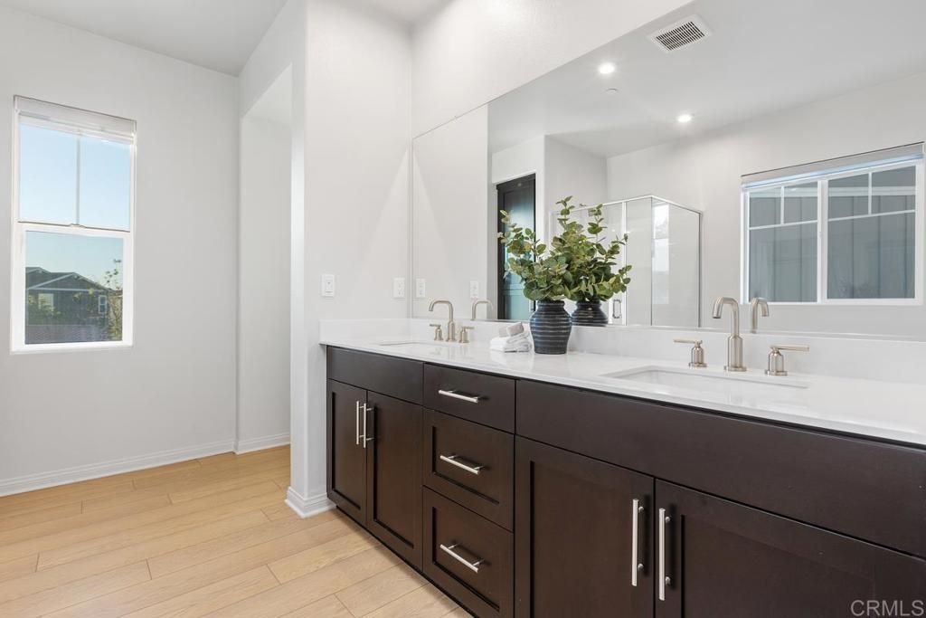 Well, it's not everyday, but today is your opportunity to move into this turnkey Smart home ONLY 2 years old with upgrades galore. Quartz countertop island, tile back splash, SS refrigerator, stove, MW, DW and deep sink, w/luxurious laminate floors. Recessed lights and lots of natural light throughout. Lots of cabinet and a cupboard. Luscious carpet upstairs, C-Fans in all the BRs, Jack-n- Jill BA, His/Her vanities, separate tub/shower in the MBA. Walk-in MBR closet. Upstairs laundry room, A/C, convenient & energy efficient tankless water heater, PAID SOLAR. Vinyl fencing. Smart home boasts a Schlage keyless entry and an Eero router entry, Qolsys IQ panel, Ecobee thermostat, HOA maintains front yards. Rancho Buena Vista HS. EZ access to hyw 78, I-5 & I-15, near restaurants and shopping. Don't take my word for it, come and see.