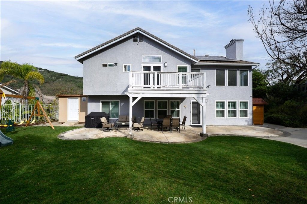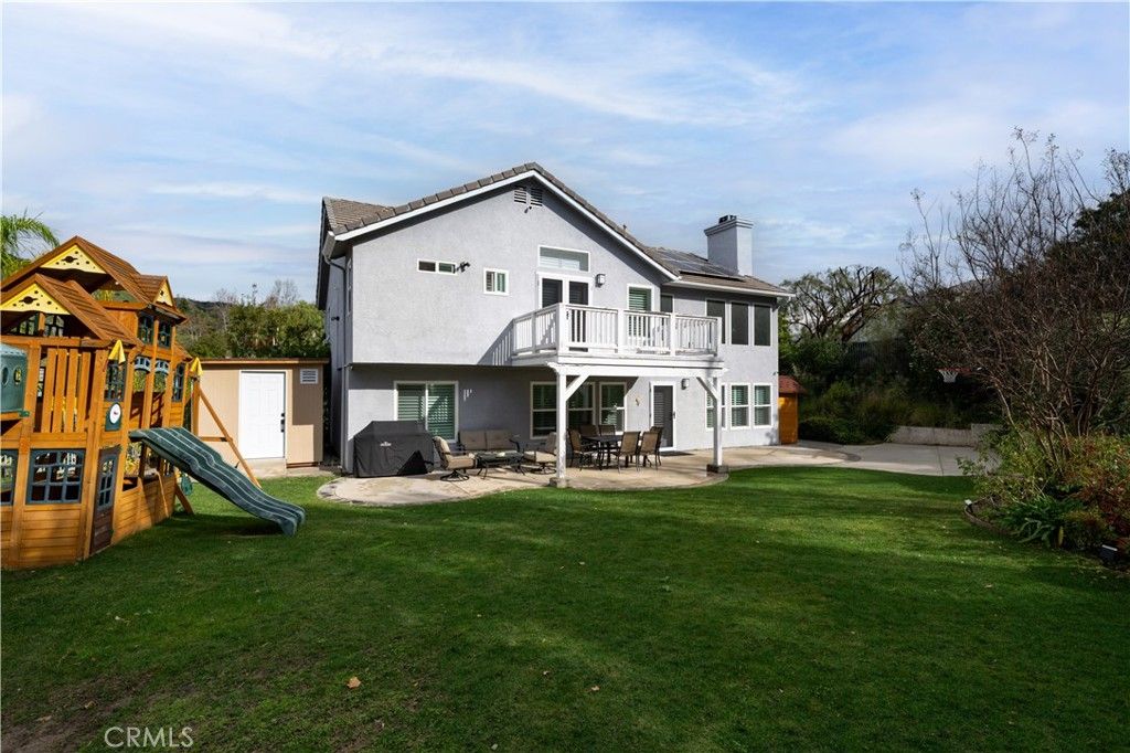 Extensively upgraded West Hills home set on a nearly half-acre lot, reflecting an exceptional level of investment in comprehensive, high-end improvements throughout. The beautifully renovated kitchen serves as the heart of the home and features custom cabinetry, new quartz countertops, backsplash, sink, gas range, and new angle stops throughout. New luxury vinyl plank flooring flows throughout the home, complemented by matching refinished front doors, staircase, and fireplace mantel, along with brand new windows and shutters. All toilets, sinks, faucets, and drains throughout the kitchen and bathrooms are brand new. Major system upgrades provide comfort, efficiency, and peace of mind, including a tankless water heater, whole-home water filtration system, recently serviced HVAC, fully paid-off solar, HOA-approved Meshtec security front door, uniquely featured in the neighborhood, with matching Meshtec security doors enclosing the property. The primary suite offers a fully remodeled bathroom with a built-in LED mirror and bidet toilet. The upstairs hallway bathroom, laundry room, and downstairs bathroom have been remodeled and updated. Additional enhancements include recessed lighting throughout, smart switches and dimmers with mobile access, and all interior and exterior lighting upgraded to LED. The garage is thoughtfully upgraded with epoxy flooring, extensive built-in cabinetry, recessed lighting, overhead storage, and a myQ ultra-quiet wall-mounted opener. A 12-camera security system adds peace of mind. Outdoor spaces are fully landscaped and designed for both enjoyment and future potential, featuring a sprinkler system with timer, a buildable rear slope per HOA, a basketball court with professional-grade hoop, a natural gas BBQ line, and a large storage shed built on slab. Located within the highly regarded Pomelo, Hale, and El Camino school districts, and just minutes from a newly renovated park and Westfield Topanga Mall, this home presents a rare opportunity to own a truly special property in a prime West Hills location!