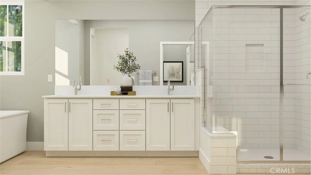 This stunning 2-story, 4 bedroom, 3.5 bathroom smart home offers the perfect blend of comfort and style. With a convenient 2-bay garage and exterior single car space, this home has all the space you need for modern living. Nestled in a vibrant community, you'll soon enjoy access to fantastic amenities including a sparkling pool, spa, a welcoming community center, and a sprawling 5-acre city park right in the neighborhood. Par includes 2 basketball courts, 4 pickle ball courts, bocce ball, dog park, bicycle trails and more! This home and its surrounding offer endless opportunities in a highly sought after, limited availability, established location, with excellent retail options just minutes away. This home has a large homeowner suite balcony and is upgraded with premium custom flooring on both levels throughout. Do not miss out on the chance to make this exceptional property your own.