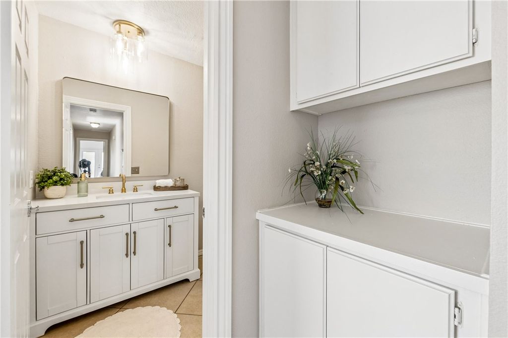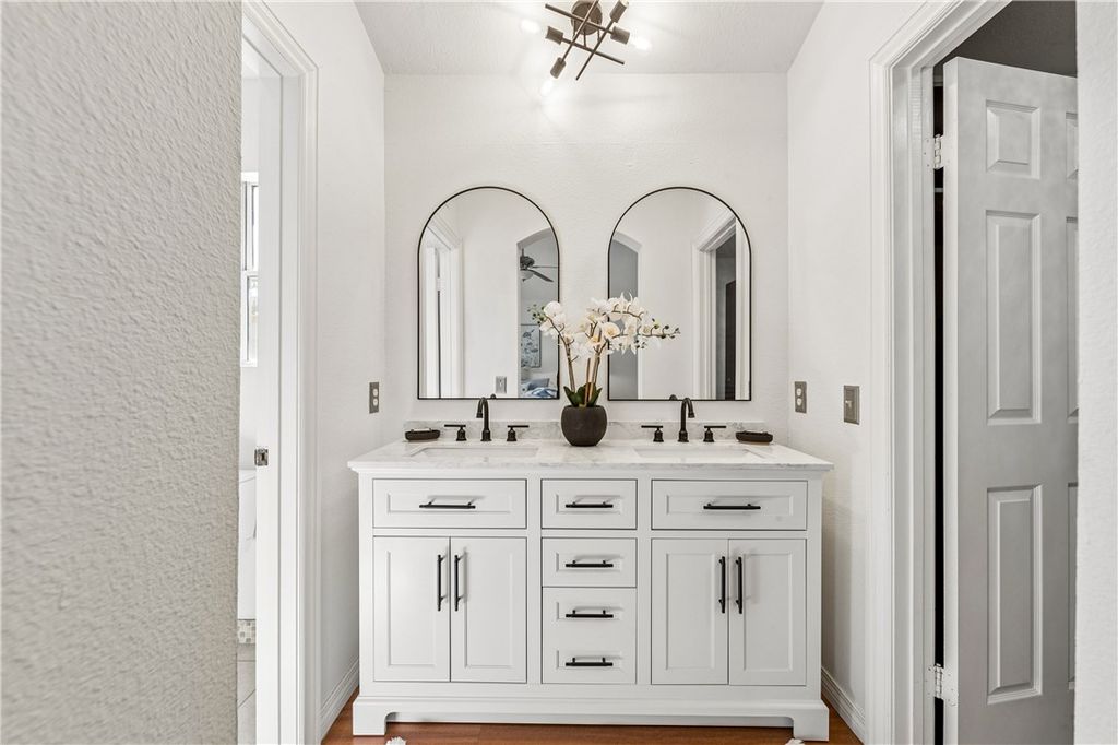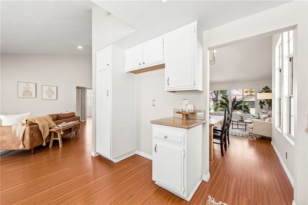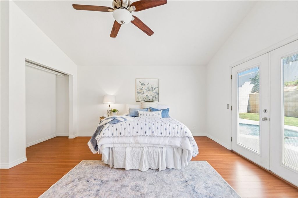 Inside, the home offers a comfortable and functional layout with three spacious bedrooms and two updated bathrooms. The primary suite features vaulted ceilings, a beautifully refreshed bathroom with a new vanity, mirrors, and lighting, plus a walk-in closet with built-ins and an additional niche perfect for a desk, dressing space, or additional storage.
