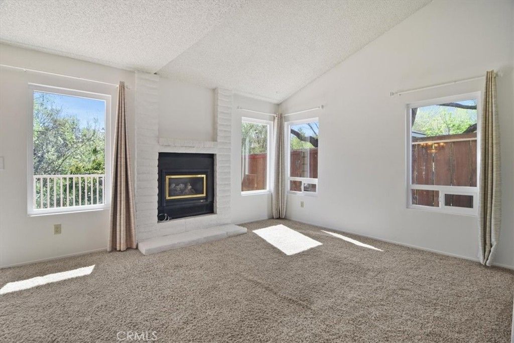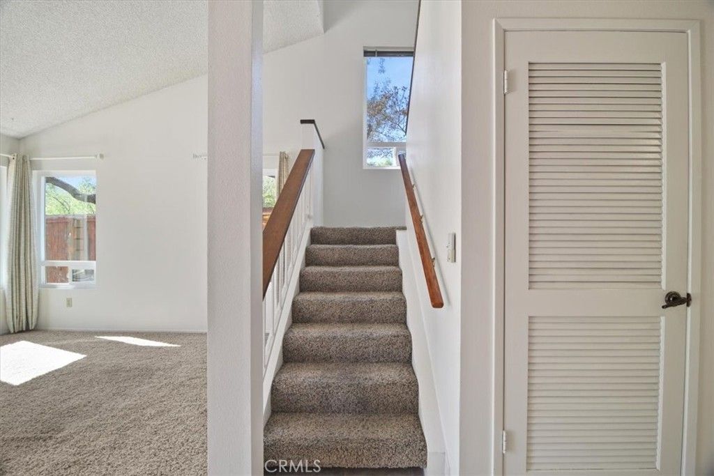 The thoughtfully designed floor plan offers comfortable living across two levels. The first floor includes a convenient laundry room, a bright kitchen, a versatile bedroom, a fully remodeled bathroom, and open living and dining areas. The kitchen includes upgraded cabinets, a new range and a new refrigerator. The spacious living room boasts a striking vaulted ceiling and a cozy gas fireplace, perfect for relaxing evenings. Ample built-in storage throughout keeps everything organized and clutter-free. Sun tunnel skylights keep the entry and downstairs bathroom bright and sunny.