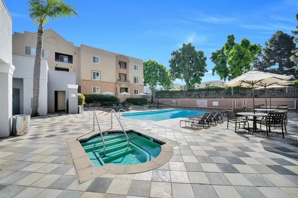 Prime UTC location! Quiet ground floor corner 1 bedroom, 1 bath Condo in Villa Vicenza(gated) offers peaceful courtyard views, in-unit laundry, and one reserved parking spaces. The amenity rich gated community features a pool, spa, fitness center, and internet café. Just minutes to Westfield UTC mall, UCSD, the University of California San Diego shuttle, dining, beaches and access to new trolly station. Ideal for primary residence or investment opportunity. Resort level amenities including heated pool, spas, showers and full gym.