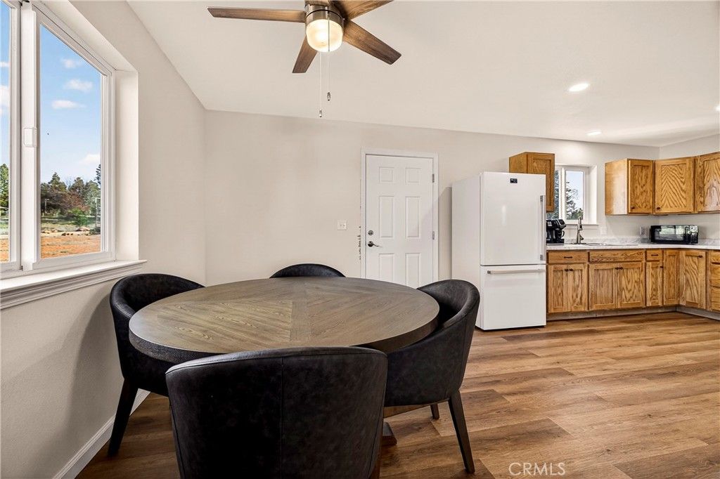 Central Paradise Location for this 2-bedroom 1 bath 2023 built home at the end of the Cul-De-Sac. The spacious .41-acre lot is level and has room for a shop or garage. The covered concrete front porch welcomes you into the home. The main living area has the open concept with the living room, dining room and kitchen. The kitchen offers wood cabinets, stainless steel sink, 5 burner free standing oven/range and laminated counter tops. The home also offers dual pane windows with wood accent windowsills, central whole house fan, mini split efficient heating and air, cement board siding and a tankless water heater. The bathroom has an upgraded wood vanity, solid surface countertop and tub/shower combination. Both bedrooms are spacious and have upgraded ceiling fan / light fixtures. The refrigerator, washer and dryer are included with the home. Barely lived in very clean. This home is ready for a new Paradise resident.