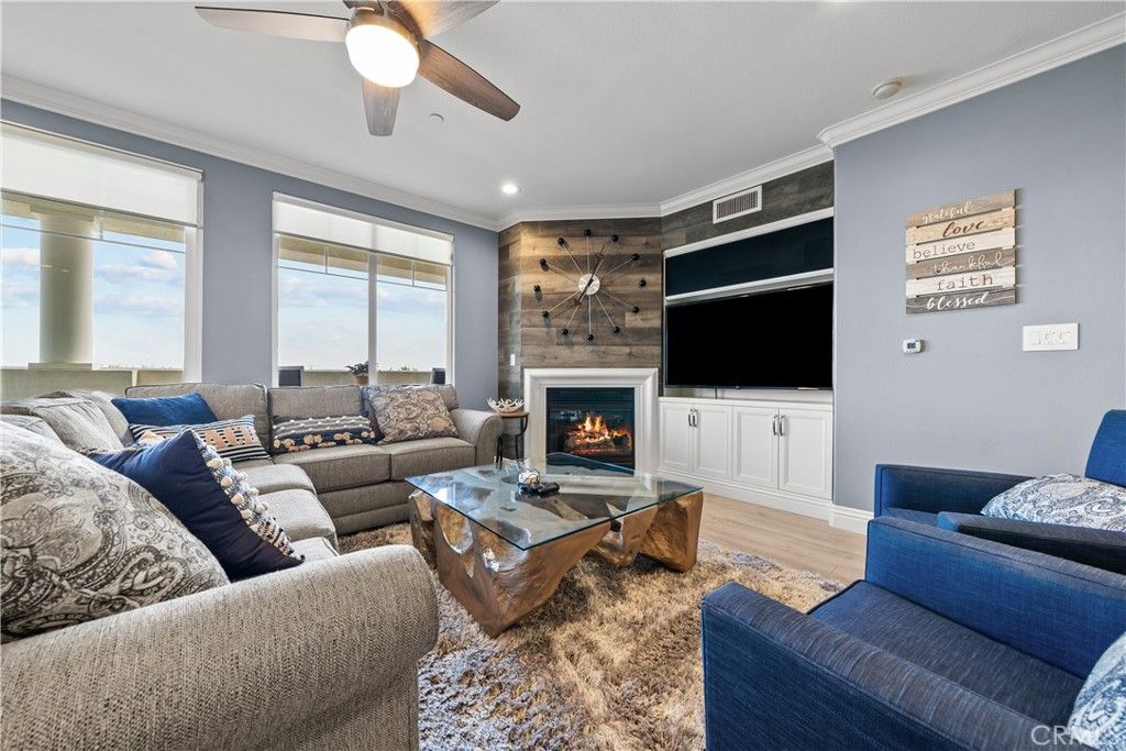 Welcome to coastal living at its finest in the highly sought-after Channel Islands Harbor community. Panoramic views from almost every room, 2 bedrooms plus den/office, Ideally situated just moments from the marina, beaches, and waterfront dining. Enjoy the coastal breeze, nearby walking paths, and the vibrant harbor lifestyle that makes this neighborhood so special. Whether you're spending mornings on the water, evenings dining by the marina, or simply enjoying the peaceful surroundings, this home places you at the heart of it all. Popular open and airy floorplan, Professionally and Extensivly remodeled w/custom built-in Bar, Office, TV Cabinet, Fireplace, Vanity, Master closet. Custom Slider doors in closet and primary bathrm. By glass -enclosed shower add multiple shower heads, 2 A/C'S (Primary and Lvgrm) No expense spared. Custom Glass Kitchen backsplash, expansive windows that frame panoramic marina and water views. Designed for both comfort and entertaining, the main living space flows seamlessly from the gourmet kitchen into the dining and living areas. The kitchen showcases high-end stainless steel appliances, stone countertops, custom cabinetry, and a beautifully added wine and coffee bar with seating, creating the perfect gathering space. The spacious living room features a custom fireplace, designer paint scheme, and abundant natural light, opening to a private balcony where you can savor morning coffee, evening sunsets, and the tranquil sight of boats gliding by. The primary suite is a true retreat, offering stunning marina views, a custom cedar-lined walk-in closet, private balcony access, and a spa-inspired ensuite bath complete with dual sinks, a custom makeup vanity, a large soaking tub, and a glass-enclosed shower with multiple shower heads. A generously sized second bedroom provides harbor views, a large closet, and a private bath with an upgraded shower"”ideal for guests or family. A flexible bonus area currently serves as a home office with built-in desk and cabinetry, perfect for remote work, crafting, or hobbies. Gated community, with available charging stations, offers resort-style amenities including a spa, BBQ areas, and lounging spaces. Additional highlights include gated subterranean parking with two prime spaces adjacent to the elevator and two dedicated storage lockers. Ideally located near waterfront dining, shopping, and just minutes from the beach.