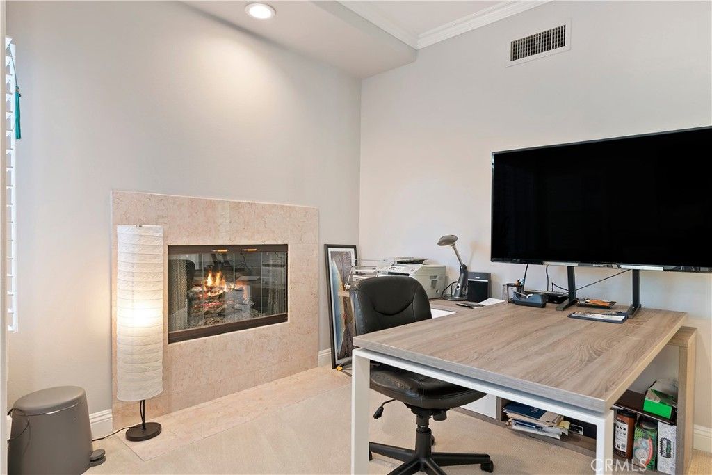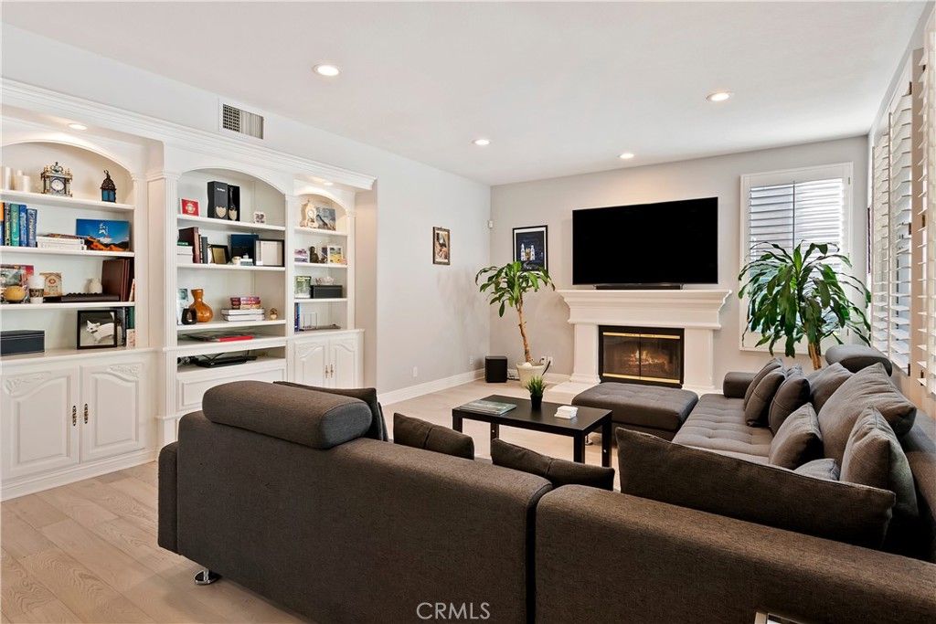 The home features high ceilings, custom cabinetry, wood flooring, plantation shutters, and three fireplaces. The spacious primary suite enjoys mountain views and includes crown molding, dual closets, a large walk-in closet, and an oversized en-suite bathroom. The formal living areas and family room feature newer wood floors, while the kitchen offers a well-proportioned center island and a customized walk-in pantry, ideal for everyday living and entertaining.