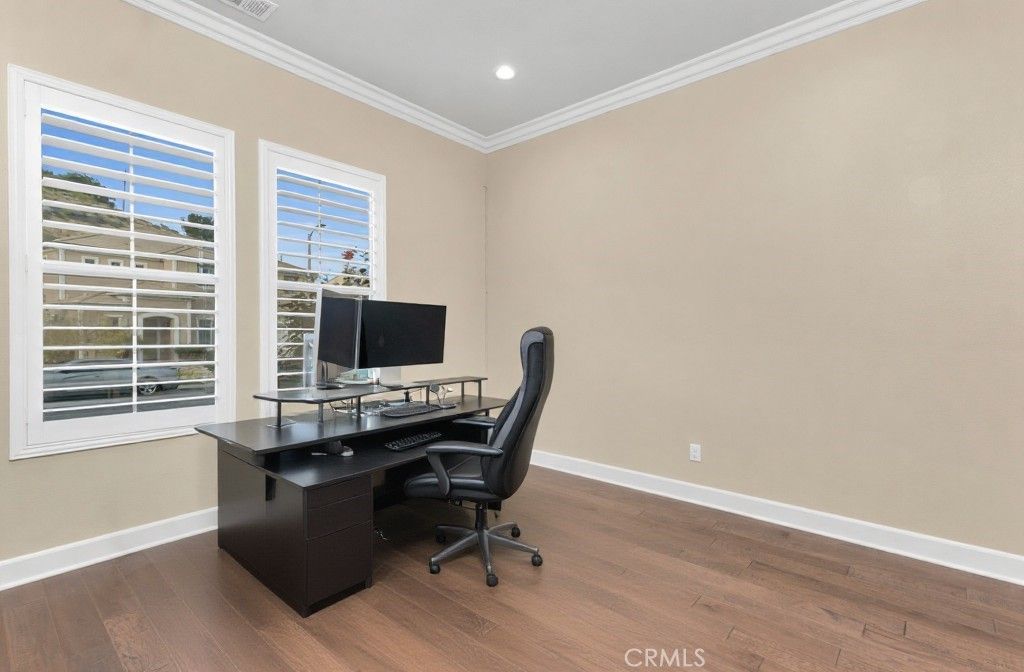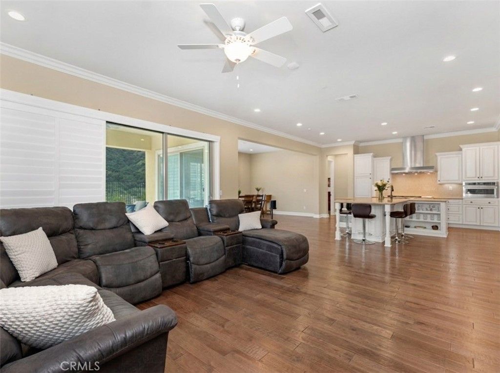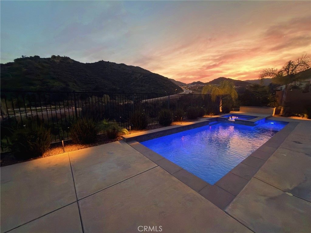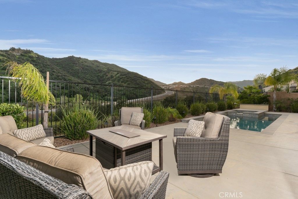 Stunning canyon-view smart home with resort-style pool, Tesla solar with four Powerwalls, and luxury indoor-outdoor living in the highly sought-after Sterling at West Hills community. Built in 2017, this exceptional residence offers 5 bedrooms, 5.5 bathrooms and approximately 4,336 sq. ft of living space on a premium 10,745 sq. ft cul-de-sac lot with rare privacy and sweeping hillside views. Designed for modern living, the home features hardwood and tile flooring throughout, crown molding, plantation shutters, recessed lighting, copper plumbing, and an open-concept floor plan ideal for entertaining and everyday comfort. Energy efficiency and innovation take center stage with Tesla solar panels and four Tesla Powerwalls, significantly reducing electricity costs while providing backup power capability. The home also includes dual Tesla NACS EV charging stations. A fully integrated smart home system includes Nest thermostats, Nest cameras, Nest Protect smoke and CO detection, keyless entry, smart garage access, gigabit AT&T fiber internet with full-home ethernet wiring, and a comprehensive security system with glass-break sensors and monitored door and window protection throughout the home. The chef's kitchen features custom cabinetry, granite countertops, a large center island with breakfast seating, walk-in pantry, farmhouse sink, and stainless steel KitchenAid appliances including a 6-burner double oven gas range, built-in refrigerator, wall hood, dishwasher, and microwave convection oven. A private main-level guest or in-law suite offers its own living room, bedroom, walk-in closet and en-suite bath with zero-entry glass shower, ideal for multigenerational living or extended guests. Upstairs, a spacious bonus room opens to a covered balcony loggia with fireplace and scenic canyon views. The primary suite features a lounge area, dual walk-in closets, and a spa-inspired bath with freestanding soaking tub, glass shower, dual vanities and makeup vanity. The backyard is a true resort-style retreat featuring sweeping canyon views, covered outdoor living space, low-maintenance turf landscaping, fruit trees, built-in dog run with dog door, outdoor BBQ station with refrigerator, and a heated PebbleTec® lap pool and spa with waterfall and color-changing lighting. A rare opportunity to own one of the most energy-efficient and technologically advanced homes in Sterling at West Hills.