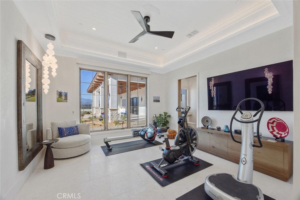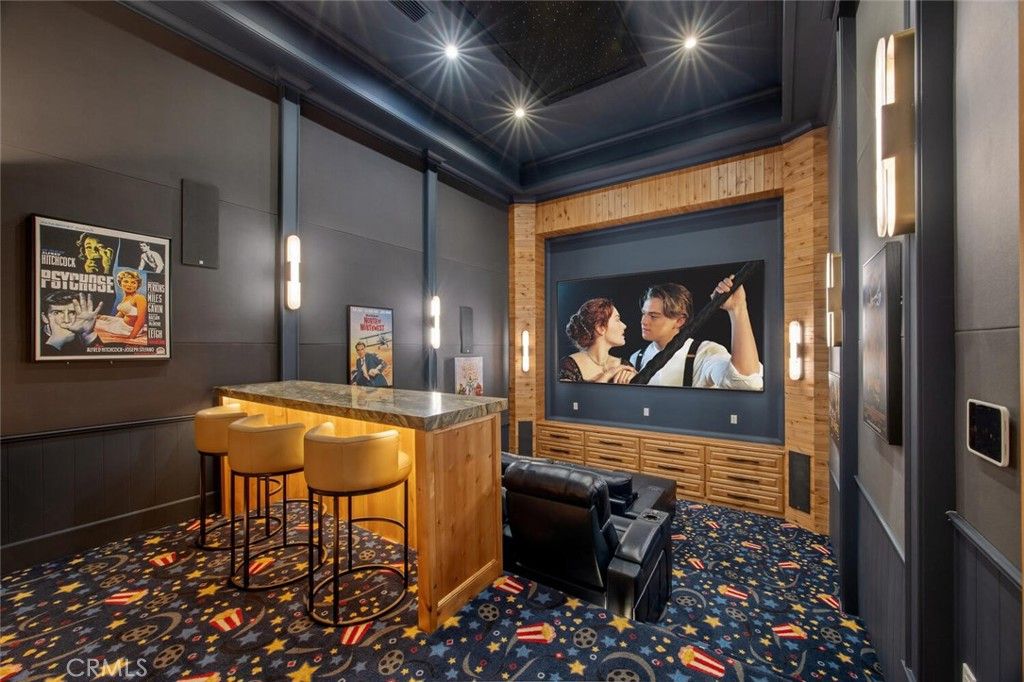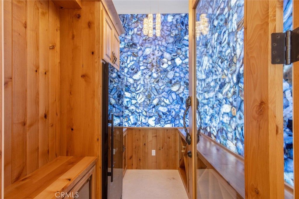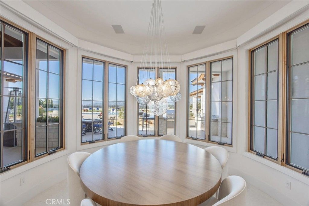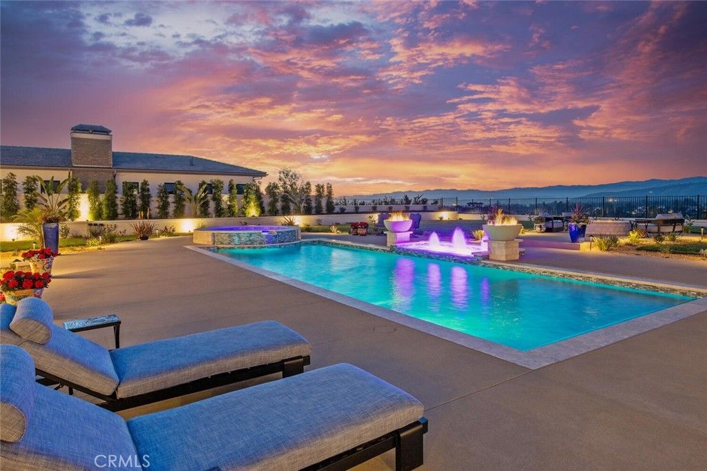 Completed in 2025, this single-story architectural residence is set on approximately one acre of gated grounds, blending panoramic views with refined design and resort-caliber living. A dramatic foyer introduces Turkish white limestone floors, hand-applied Venetian plaster walls, and a sculptural multi-tier chandelier. Beyond, the great room soars to 26-foot ceilings with a limestone fireplace and expansive 20-foot disappearing nano doors that dissolve the boundary between interior and exterior living. The turret-style living room is framed by 12-foot windows and anchored by a striking quartzite fireplace, while the formal dining room features custom built-ins and designer lighting. The chef's kitchen impresses with 15'6" ceilings, custom knotty alder cabinetry, dual navy-stained islands, quartzite countertops, premium appliances, and an adjoining circular breakfast nook. A fully equipped prep kitchen, Butler's Pantry, and concealed walk-in pantry ensure effortless entertaining. The wine room is a statement piece, clad in backlit gemstone slabs with custom alder racking and a 70-bottle refrigerator. A 50-foot gallery hallway leads to a show-stopping powder room and into thoughtfully designed private spaces, including a tiered theater with 140-inch screen and full bar, and a sophisticated study with quartzite fireplace and French doors opening to a secluded patio. Three secondary bedroom suites feature bespoke finishes and private baths, with one currently styled as a gym overlooking pool and mountain views. The primary suite is a retreat of its own, complete with fireplace, nano doors to the yard, dual custom walk-in closets, and a spa-inspired bath offering a sculptural soaking tub, quartzite vanities, and an oversized backlit quartzite steam shower. Outside, the gated motor court with permeable pavers leads to an oversized three-car garage. The resort-style grounds showcase a covered patio with wood-paneled ceiling, stone fireplace, and outdoor kitchen. The beach-entry pool features a 10-foot spa, waterfall, fire bowls, and tranquil fountain, complimented by designer pavers. A detached casita offers complete privacy with limestone floors, a full kitchen, bedroom suite, designer bath, and covered patio with quartzite bar. An extraordinary estate blending architectural presence, refined craftsmanship, and resort-caliber amenities.
