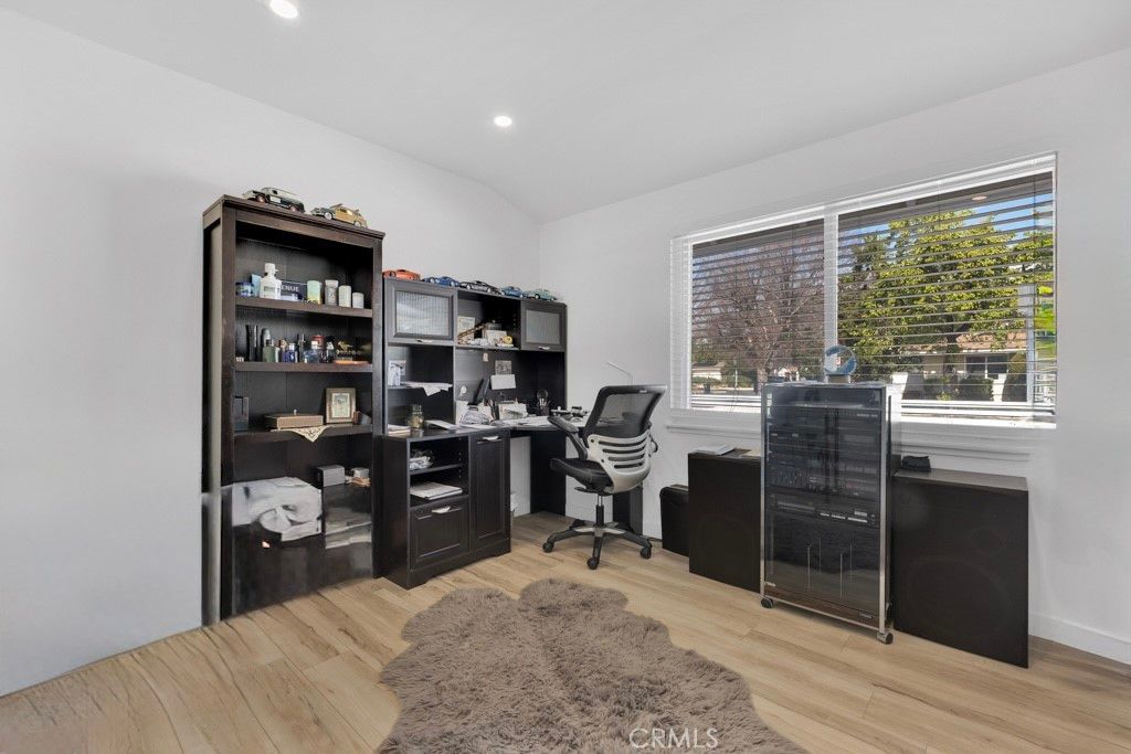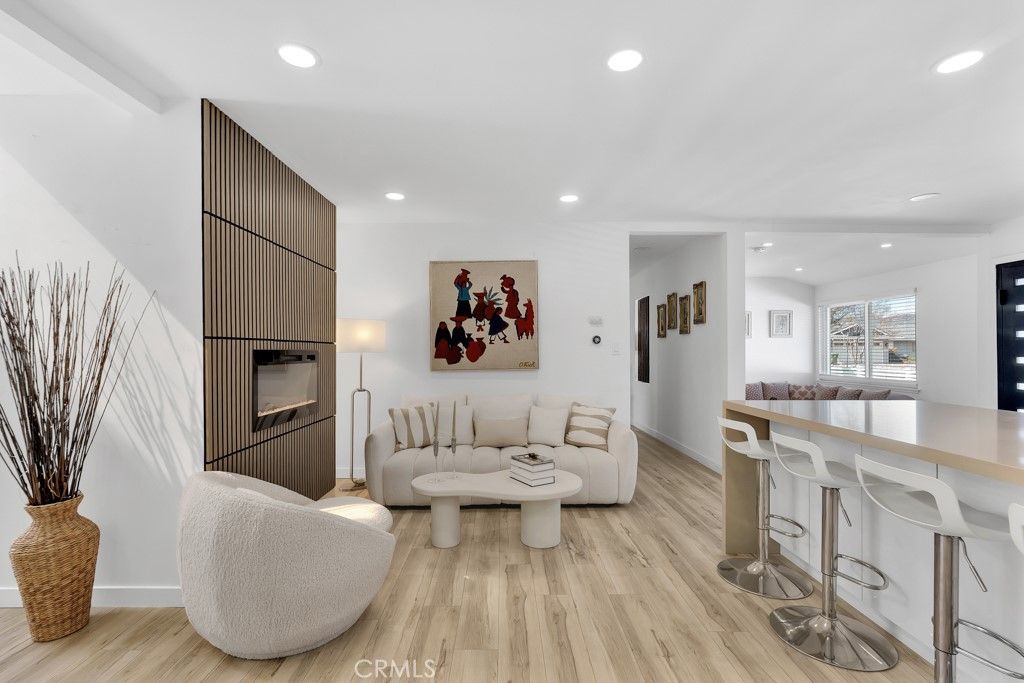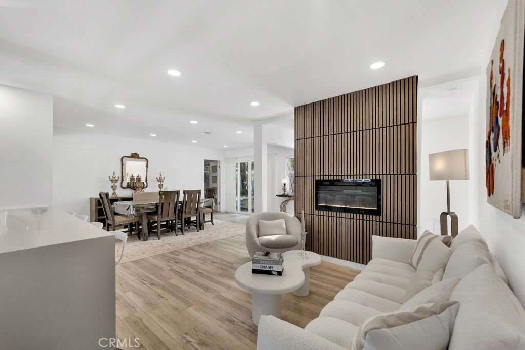 Welcome to this beautifully updated single-story home on a 7,499 sq ft corner lot in a quiet West Hills neighborhood. The interior features stylish laminate flooring throughout, recessed lighting, smooth ceilings, and abundant natural light. The updated kitchen showcases a large center island with waterfall-style countertops, modern cabinetry, a built-in gas cooktop with stainless steel hood, and stainless steel appliances. The open-concept layout flows seamlessly into the dining and living areas, ideal for everyday living and entertaining. The living area is highlighted by a striking modern electric fireplace with a custom accent wall, creating a warm and inviting focal point. The primary suite offers a comfortable and spacious setting with an en-suite bathroom featuring modern finishes and a walk-in shower. Additional bedrooms are well-sized and versatile, with updated secondary bathrooms. The private backyard features mature trees, low-maintenance landscaping, and a covered patio perfect for year-round enjoyment. The property includes a two-car garage, a covered front parking area equipped with an electric vehicle charger, and a gated rear parking area with an electric opener, offering excellent flexibility for RV or additional secured parking. Additionally, the property has an ADU permit approved by the city, providing a valuable opportunity for future expansion or additional living space. Conveniently located near parks, shopping, dining, and major routes, this move-in-ready home offers modern living in an established West Hills setting.
