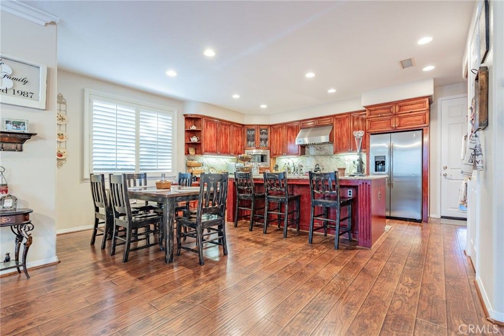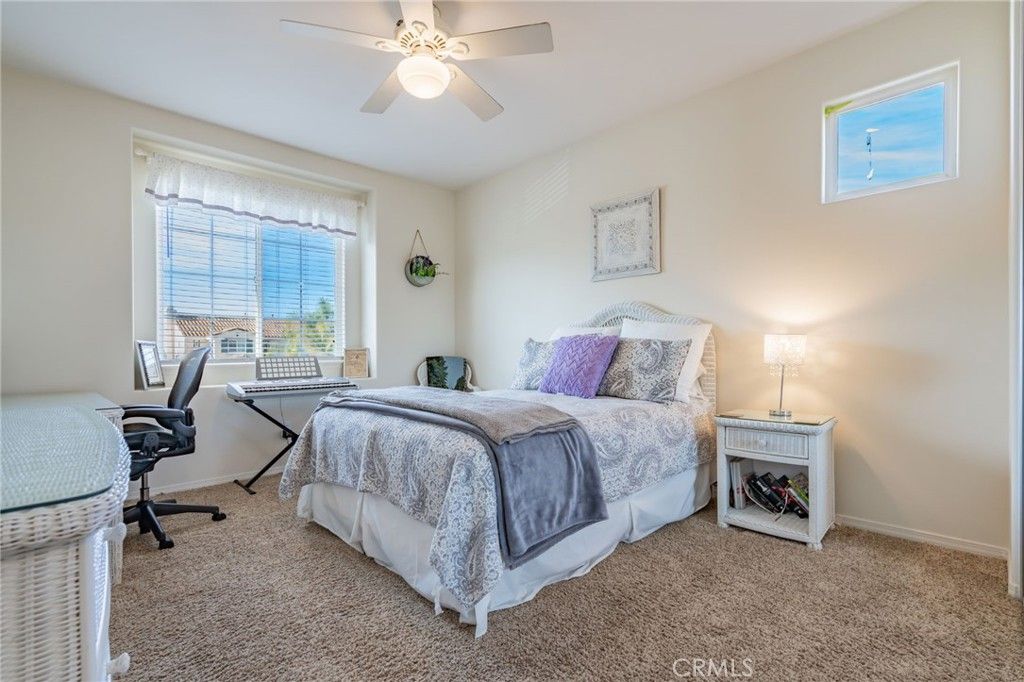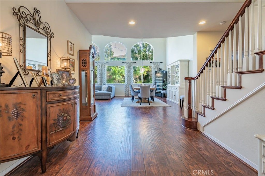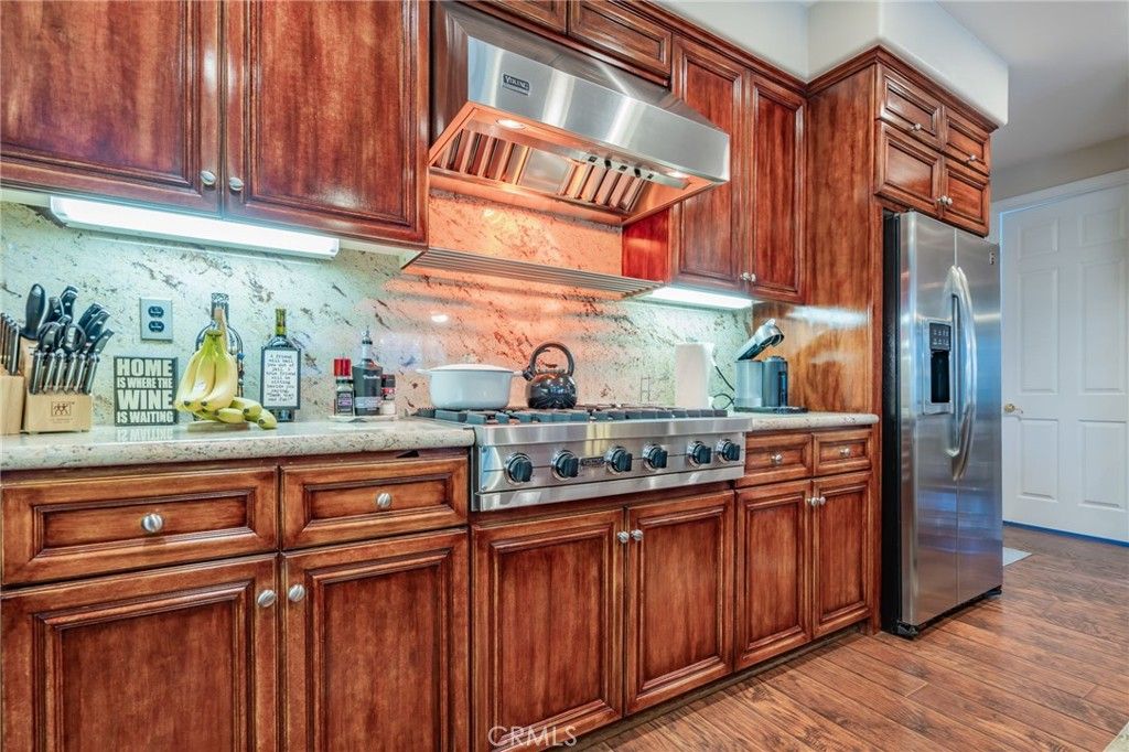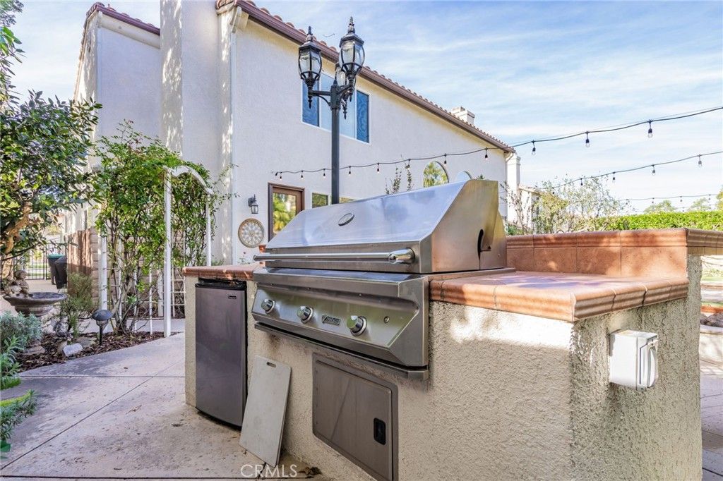 Welcome to Cantara, nestled within the gated community of Serenada. This beautifully updated home offers 4 bedrooms and 4 full bathrooms, including a convenient downstairs bedroom with an adjacent full bath. The formal double-door entry opens to spacious living areas enhanced by custom paint, elegant crown molding, and upgraded laminate flooring throughout the downstairs and main bedroom. The remodeled kitchen features Viking and GE Profile stainless steel appliances, granite countertops, and a matching backsplash. The formal living and dining rooms flow seamlessly into the inviting family room, creating an ideal layout for both everyday living and entertaining. The backyard is a true retreat, showcasing a large patio, a stunning rock waterfall, a built-in Gunite spa, a gas fire pit, and a built-in BBQ with refrigerator. Low-maintenance turf lawns in both the front and back complete the outdoor experience. The expansive main bedroom includes an ensuite bathroom with a spa tub, a large stall shower, upgraded laminate flooring, and a walk-in closet. An additional upstairs bedroom also features its own ensuite bathroom, offering comfort and privacy for guests or family members. Two separate garages"”a two-car and a one-car"”feature newer insulated doors for added efficiency and convenience. This exceptional home has been thoughtfully upgraded and meticulously maintained. It's one you won't want to miss.