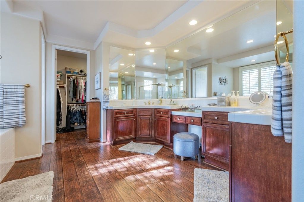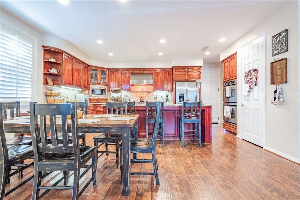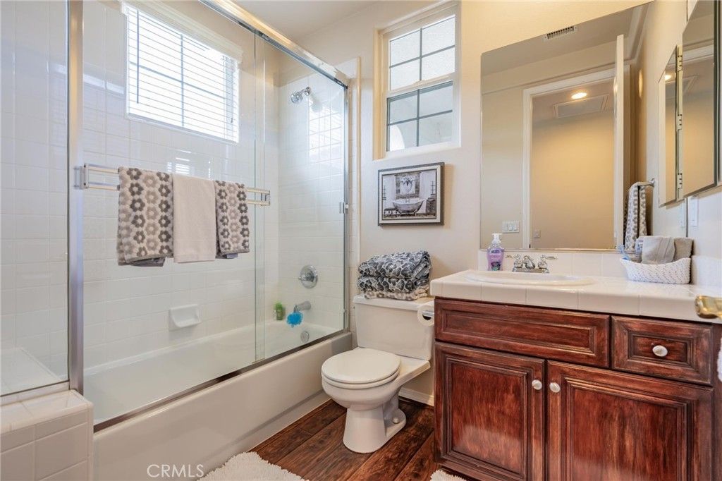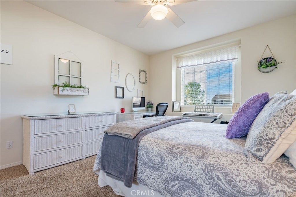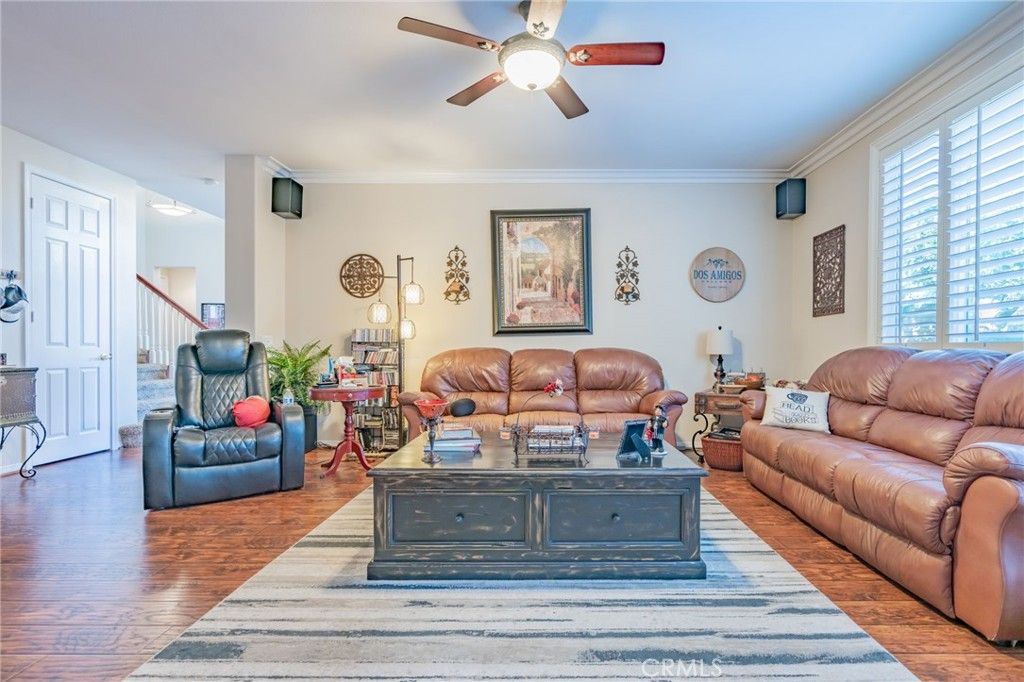 Welcome to Cantara, nestled within the gated community of Serenada. This beautifully updated home offers 4 bedrooms and 4 full bathrooms, including a convenient downstairs bedroom with an adjacent full bath. The formal double-door entry opens to spacious living areas enhanced by custom paint, elegant crown molding, and upgraded laminate flooring throughout the downstairs and main bedroom. The remodeled kitchen features Viking and GE Profile stainless steel appliances, granite countertops, and a matching backsplash. The formal living and dining rooms flow seamlessly into the inviting family room, creating an ideal layout for both everyday living and entertaining. The backyard is a true retreat, showcasing a large patio, a stunning rock waterfall, a built-in Gunite spa, a gas fire pit, and a built-in BBQ with refrigerator. Low-maintenance turf lawns in both the front and back complete the outdoor experience. The expansive main bedroom includes an ensuite bathroom with a spa tub, a large stall shower, upgraded laminate flooring, and a walk-in closet. An additional upstairs bedroom also features its own ensuite bathroom, offering comfort and privacy for guests or family members. Two separate garages"”a two-car and a one-car"”feature newer insulated doors for added efficiency and convenience. This exceptional home has been thoughtfully upgraded and meticulously maintained. It's one you won't want to miss.