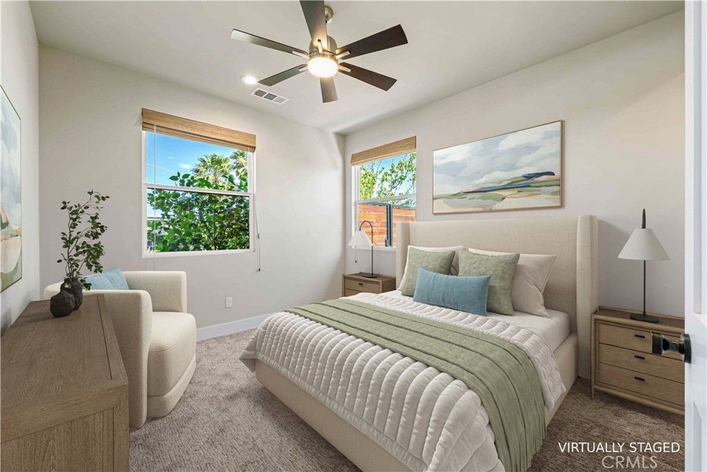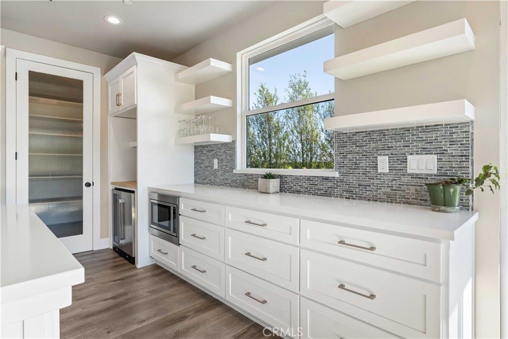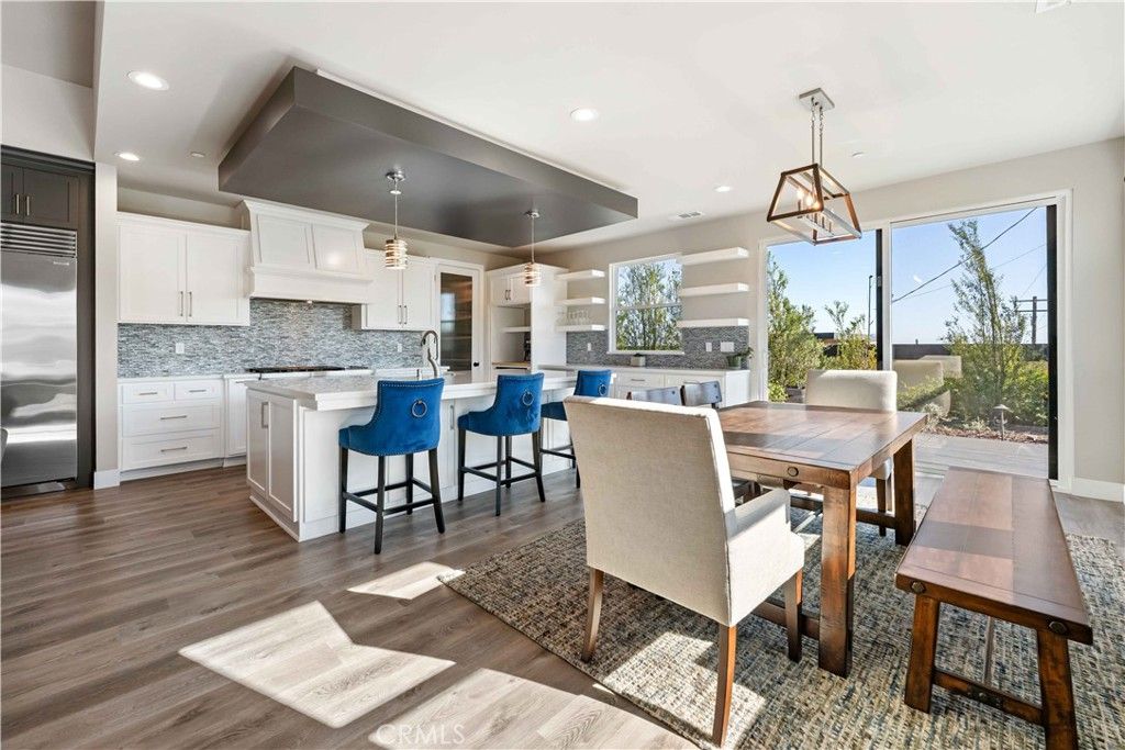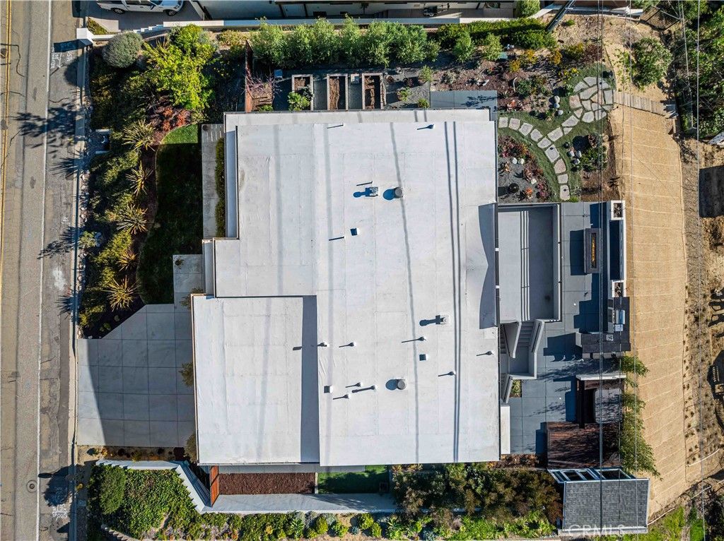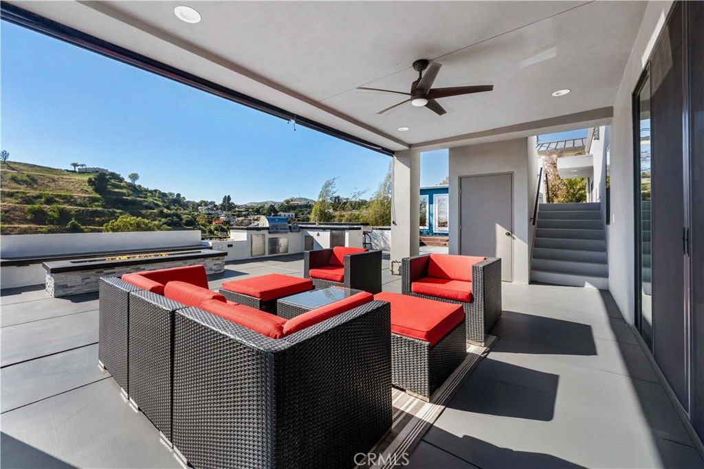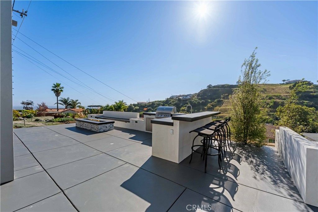 New build in 2021, this stunning modern single-story home offers hillside, mountain & ocean views with exceptional indoor-outdoor living. Designed with high ceilings, abundant natural light, and an open-concept layout, the home features a split floorplan with 4 bedrooms & 3 full baths"”two bedrooms & 2 baths on one side & two bedrooms & 1 bath on the other for ideal privacy & flexibility. All bedrooms with ample storage closets. The gourmet kitchen is thoughtfully designed for both everyday living & effortless entertaining, offering abundant prep space & expansive quartz countertops accented by a stunning glass tile backsplash that adds depth & sophistication. Contemporary pendant lighting & sleek floating shelves enhance the kitchen's modern aesthetic, creating an open & inviting atmosphere. Premium appliances include a built-in Sub-Zero refrigerator/freezer, a commercial-grade KitchenAid 6-burner range with double oven, grill, dishwasher & a built-in wine & beverage refrigerator. An expansive quartz island with a breakfast bar provides generous seating, along with ample storage. Completing the space is a large walk-in pantry featuring built-in drawers, pull-outs & shelving for exceptional organization & functionality. The spacious dining area, open to the kitchen, enjoys beautiful eye-catching views. The great room showcases a stacked stone fireplace, recessed lighting, ceiling fan & sliding doors to a covered patio for seamless indoor-outdoor living. Large windows capture backyard & view vistas from the great room, kitchen, dining area, and primary suite. The spacious primary suite includes patio access, hillside views, dual vanities, soaking tub, frameless glass walk-in shower w/tessellated tile & a large walk-in closet with built-ins. Resort-style backyard is an entertainer's dream featuring a raised view deck with private spa, built-in fire pit w/seating, fully equipped outdoor kitchen (BBQ, burner, sink, refrigerator), bar seating for 4 & a covered patio w/ceiling fan & recessed lighting. Additional highlights include a private outdoor flex space (office/gym/studio), large rooftop deck, with panoramic views, raised garden beds, citrus trees, rain barrels, irrigation system, outdoor storage & exceptional entertaining spaces. Modern upgrades include: tankless water heater, HVAC, water softener, 3 Ring cameras, deluxe vinyl plank flooring, recessed lighting, spacious laundry room, & an oversized, deep 2-car garage with extensive storage.