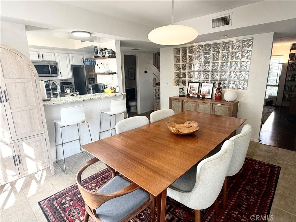 2-story townhouse in the highly desirable Liberty Canyon community in Agoura Hills. This beautiful home features a spacious living room and a separate formal dining room divided by a beautiful glass wall that allows natural light to fill both rooms while creating two individual spaces. The dining room has beautiful French doors that opens to a VERY private and tree lined outdoor brick patio, perfect for relaxation and gatherings. The upgraded kitchen features stainless steel appliances, stainless steel sink, a large pantry and another door that also leads to the outdoor patio. The main floor also features a half bathroom. Both bedrooms are located upstairs for maximum privacy, along with a full bathroom and two hallway closets.