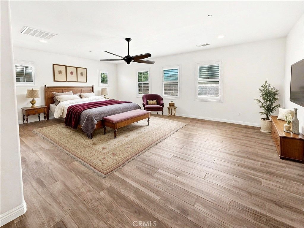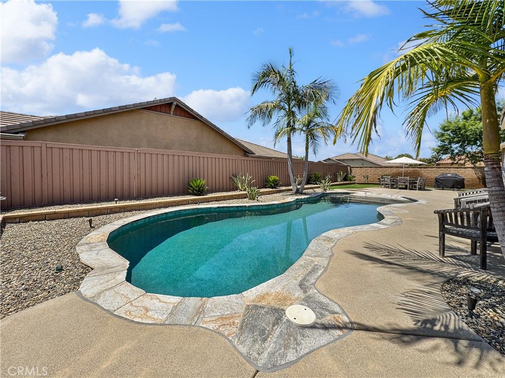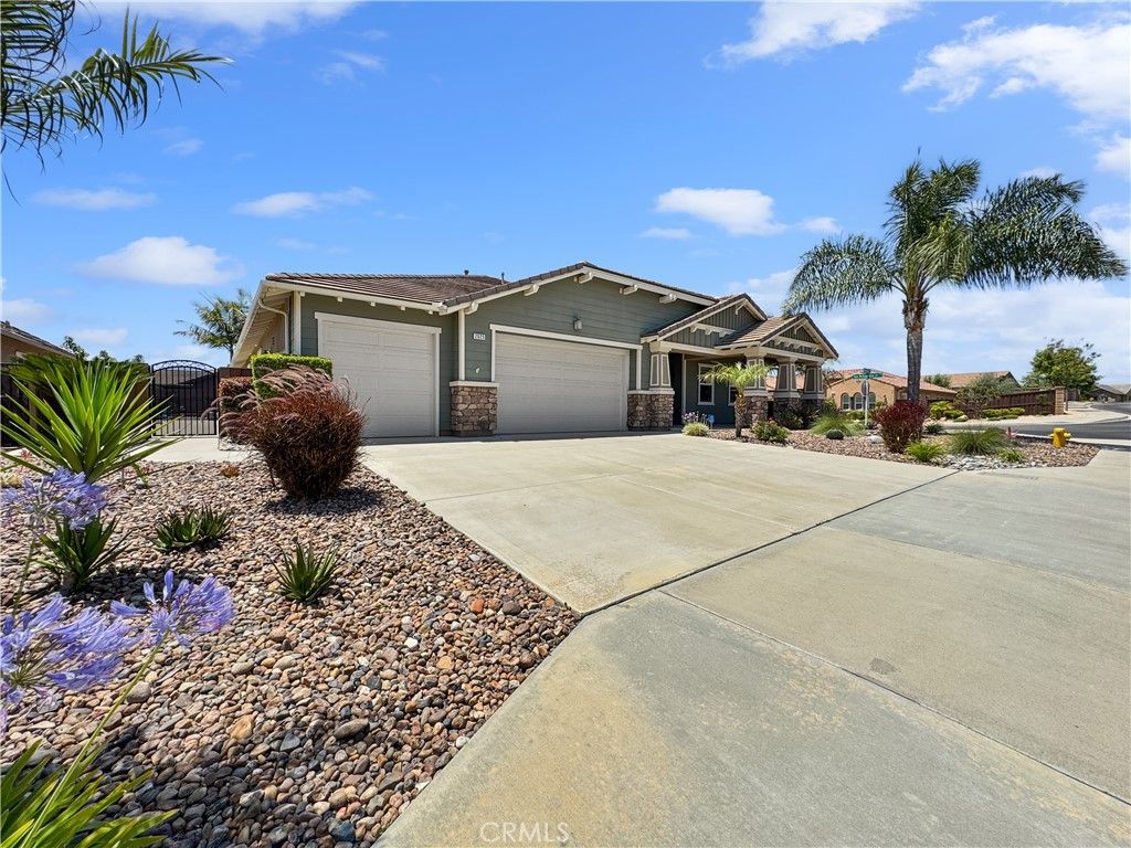 Welcome to 2025 James Gaynor, a sprawling single-story estate nestled on a prime corner lot in the prestigious gated community of Shady Grove. This meticulously maintained home offers over 3,200 sq ft of luxurious living space, featuring 4 spacious bedrooms, 3.5 bathrooms, formal living and dining rooms, a butler's pantry, and a stunning gourmet kitchen with custom European cabinetry, granite countertops, stainless steel appliances including a double oven, and an oversized island with stainless steel sink and wall-to-wall cabinets for abundant storage. The open-concept layout flows seamlessly into a large family room with a gas fireplace, custom precast surround, wood shutters, and elegant ceramic tile flooring throughout. The expansive primary suite feels like a private retreat, with space for a sitting area or office, and a spa-like bathroom featuring polished marble floors, a limestone-clad walk-in shower with bench seating, a separate soaking tub, and dual sinks with a built-in vanity. All secondary bedrooms offer ceiling fans, plush carpet, and custom window coverings. The home also boasts a large laundry room with storage cabinets and a sink, as well as a fully finished 3-car garage with insulated doors and overhead storage racks. Step outside into your private backyard oasis"”perfect for entertaining"”with a sparkling pebble tech pool, drought-tolerant landscaping, and a concrete walkway leading from the driveway to the rear yard. This home also includes a fully owned, PAID OFF SOLAR ENERGY SYSTEM"”offering significant monthly utility savings and eco-friendly living with no lease or financing to assume. Also enjoy recessed lighting, upgraded fixtures, and ample linen and hallway storage. Shady Grove offers tree-lined streets, three private parks, pickleball and basketball courts, dedicated RV parking, and a friendly, walkable atmosphere. This exceptional residence is the perfect blend of comfort, elegance, and resort-style living"”don't miss the opportunity to make it yours.