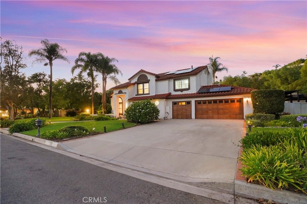 Welcome to 13049 Sunny Lane, an exceptional residence tucked within the rolling hills of Santa Rosa Valley's prestigious Bridlewood Estates. Beautiful home sits on 1.45-acre lot. with a large, detached studio/in-law's guest unit/ADU. Main house receives plenty of natural light, soaring ceilings, updated kitchen with Taj Mahal quartzite countertops. The main living area has double-sided fireplace, one bedroom downstairs with a shower bathroom, laundry room and bonus room that could be used as office. 3 bedrooms and 2 bathrooms on second floor, which include the Primary Suite with vaulted ceilings offering a serene retreat; a spacious soaking tub, steam shower, and a large walk-in closet. The resort-inspired backyard presenting a sparkling pool with water feature, fire pit, and multiple lounge areas. Accent lighting creates a tranquil ambiance that makes every evening feel like a vacation at home. Additional highlights include solar panels, a Tesla power-wall (leased), whole-home Halo water filtration system, Lorex security system. A sanctuary of timeless beauty and modern sophistication, nestled in one of Ventura County's most desirable communities. This home has it all, plenty of potentials for future projects.